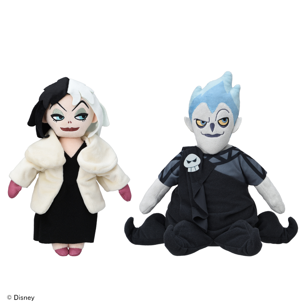 『101匹わんちゃん』と『ヘラクレス』のディズニーヴィランズをデザインしたクラシカルなぬいぐるみ。