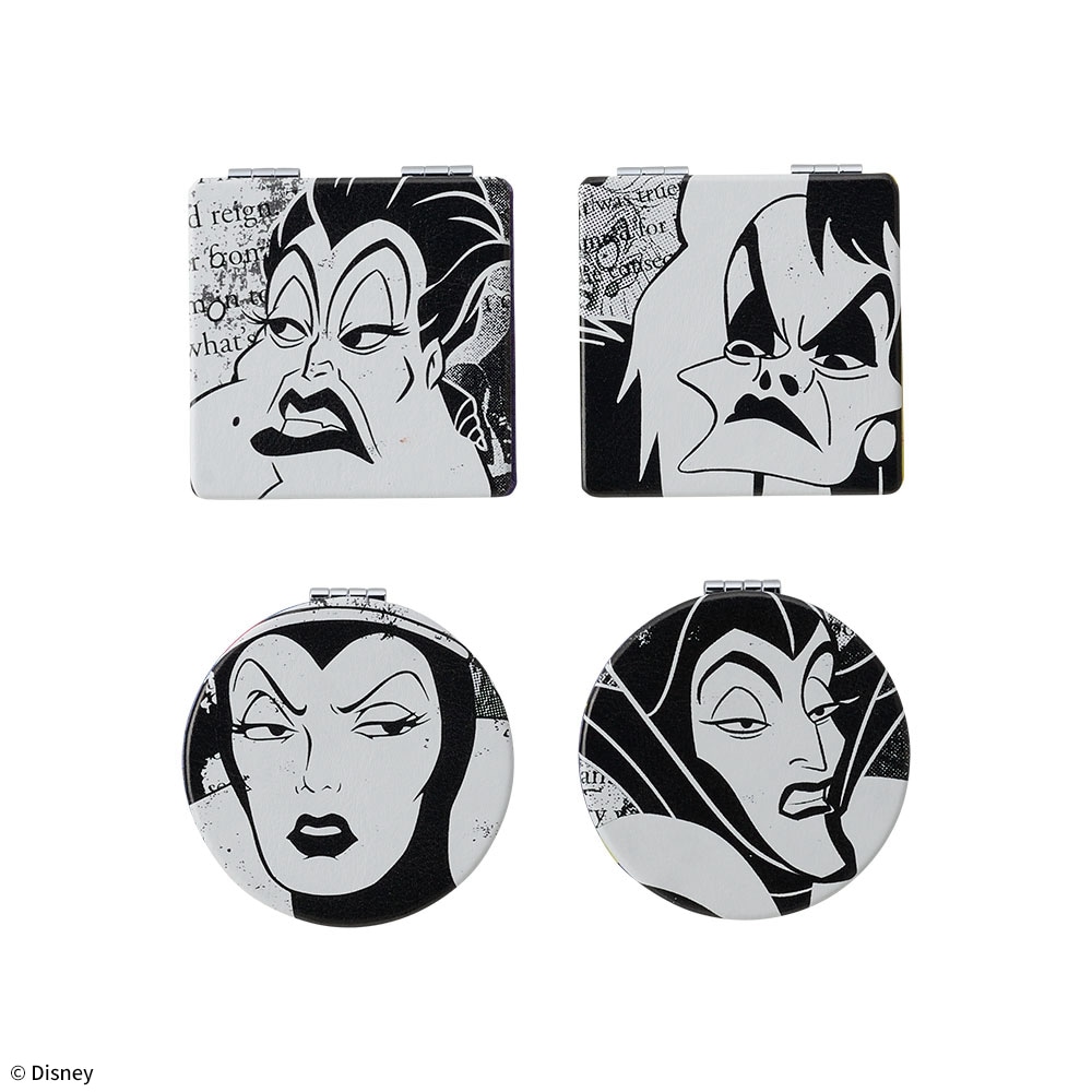 ディズニーヴィランズのデザインをあしらった、等倍鏡と拡大鏡のコンパクト二面鏡。