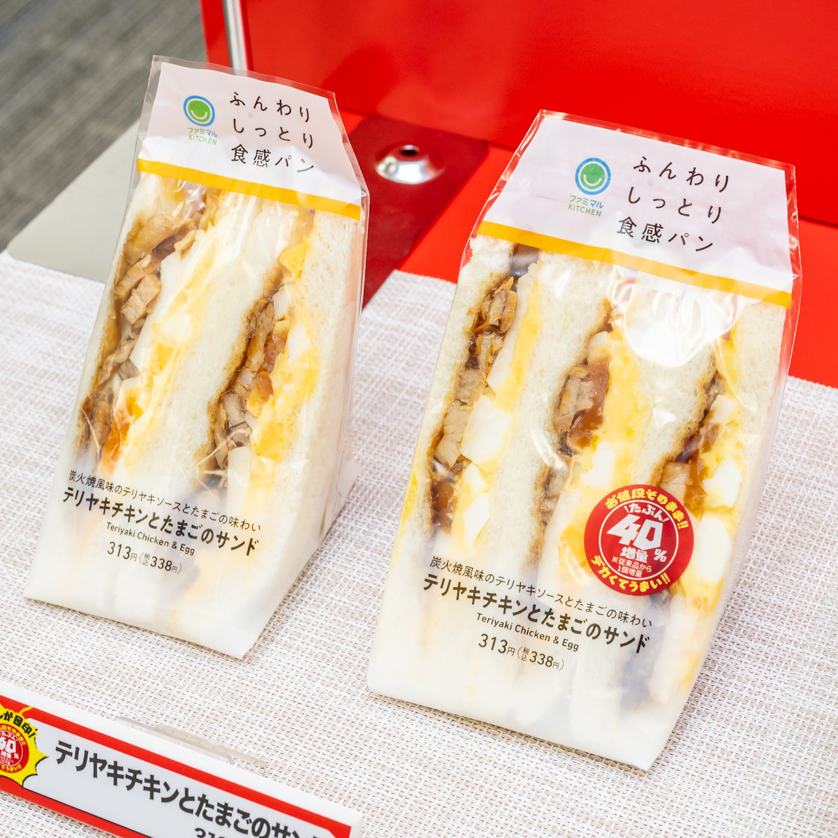 お値段そのまま1個増量し「たぶん40%増量」した「テリヤキチキンとたまごのサンド」
