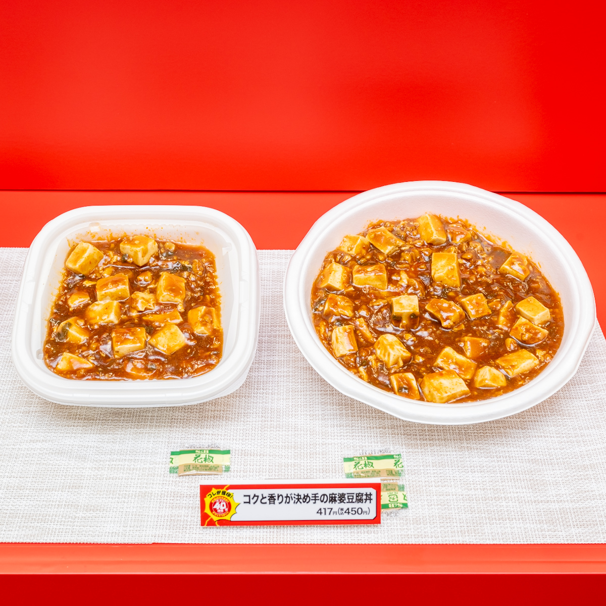別添の花椒も2個に増量された「コクと香りが決め手の麻婆豆腐丼」
