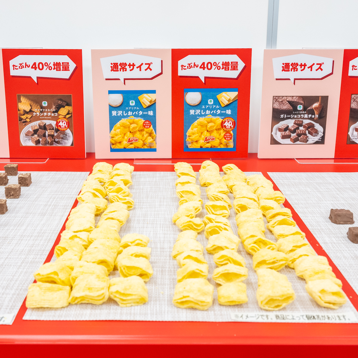 独自製法で作り上げた、4層形状のコーンスナックを「たぶん40%増量」