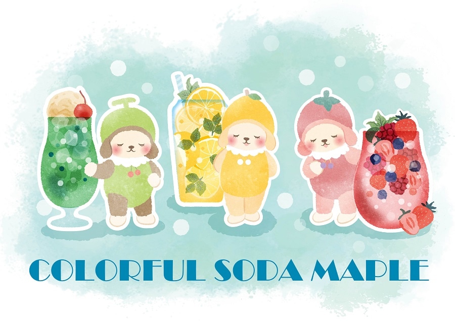 あたたかい季節に飲みたくなる、爽やかなソーダドリンクのコスチュームを着た「ひつじのメイプル」シリーズ。
