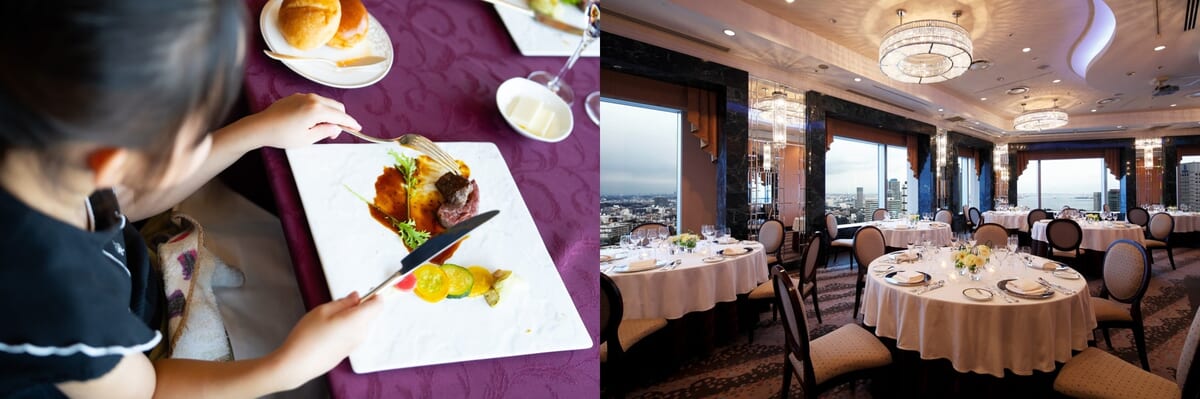 ホテル最上階「ベイ・ビュー」にて、親子でフレンチのフルコースを味わいながら、テーブルマナーを学べる実践型マナー教室を実施。