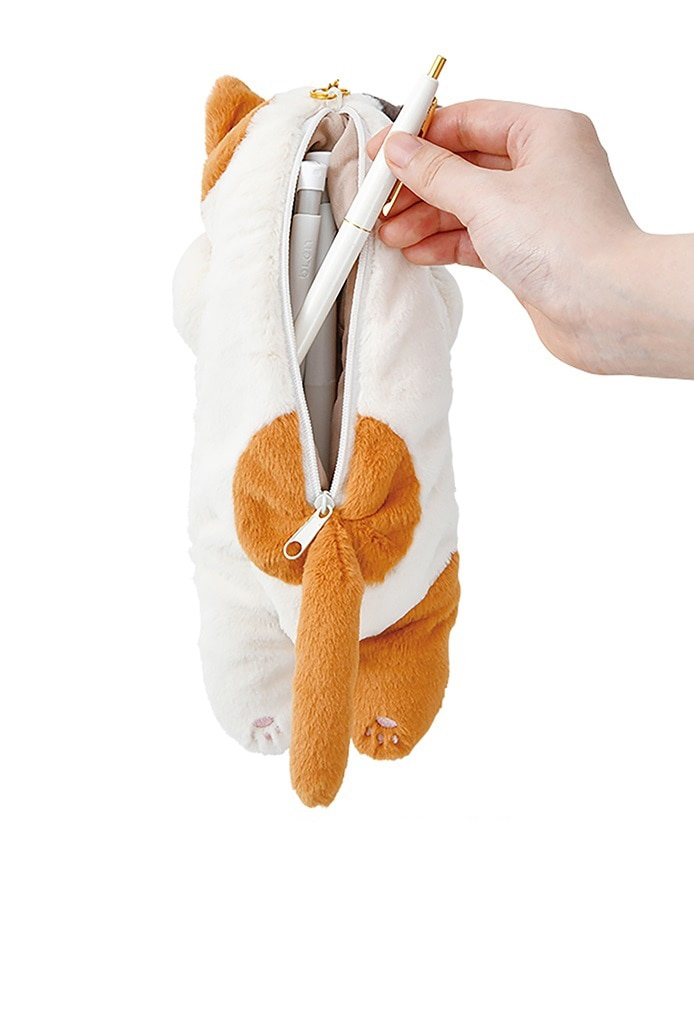 くびねっこをつままれてしまったポーズが、かわいいペンポーチです。