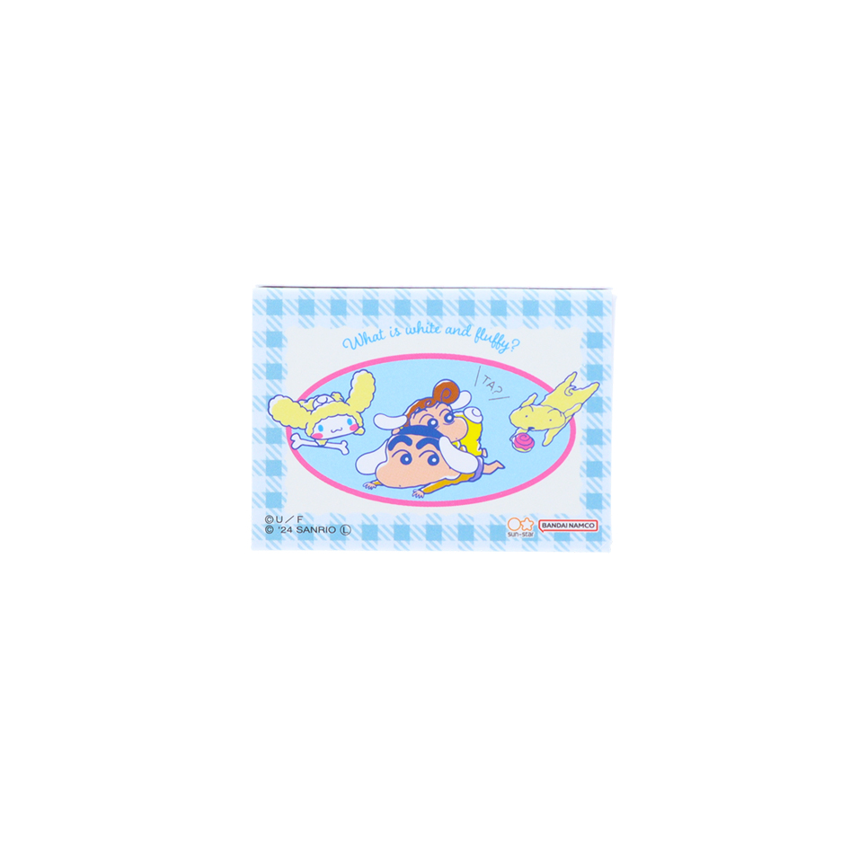 「しんちゃん」と「ハローキティ」「シナモロール」「ポムポムプリン」がそれぞれコラボした3種類のデザインから選べます。