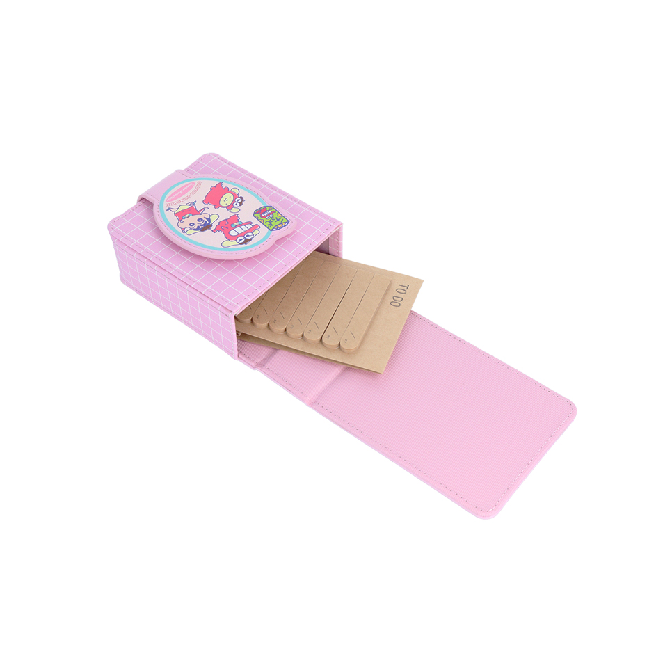 ピンクのグリッドデザインが目印の「ポップ」デザインの付箋メモ。