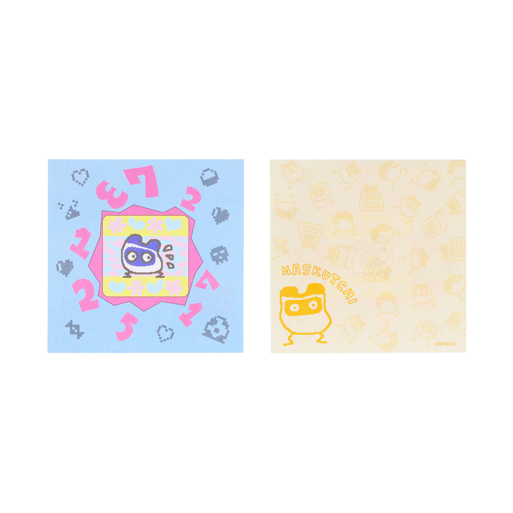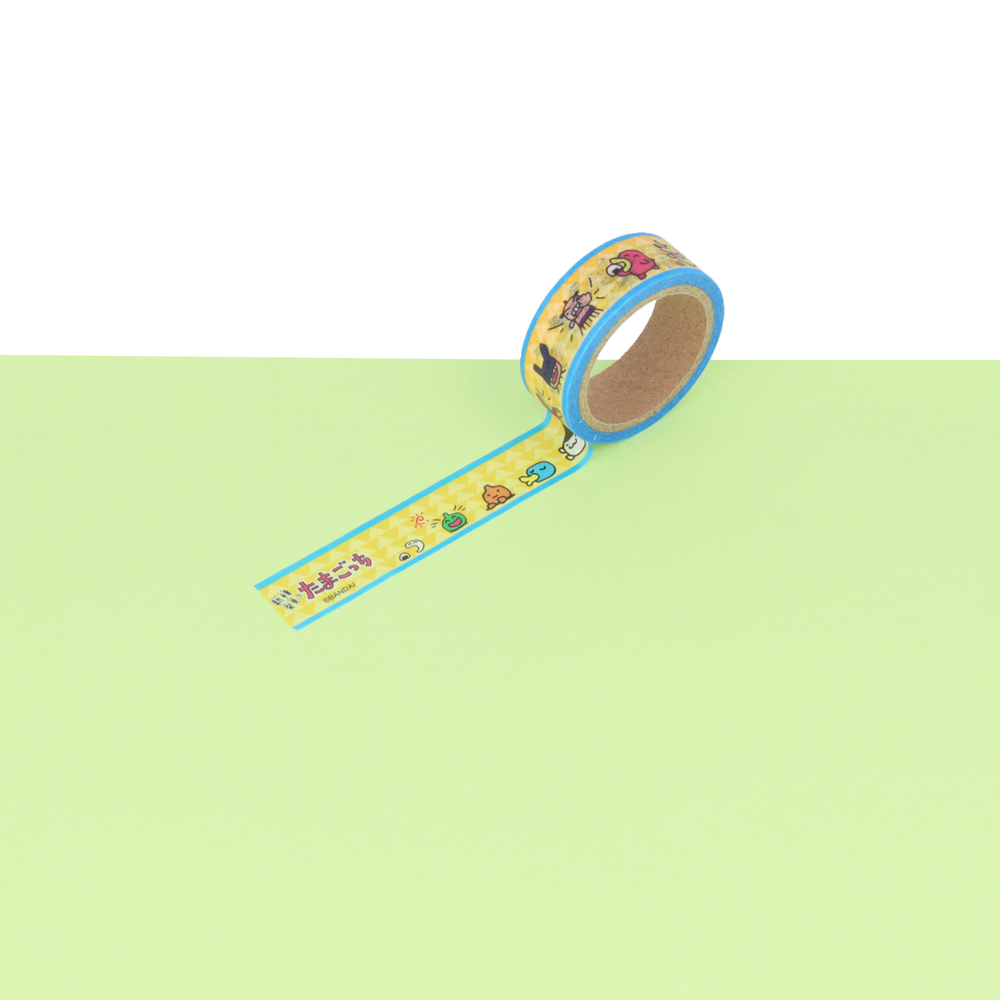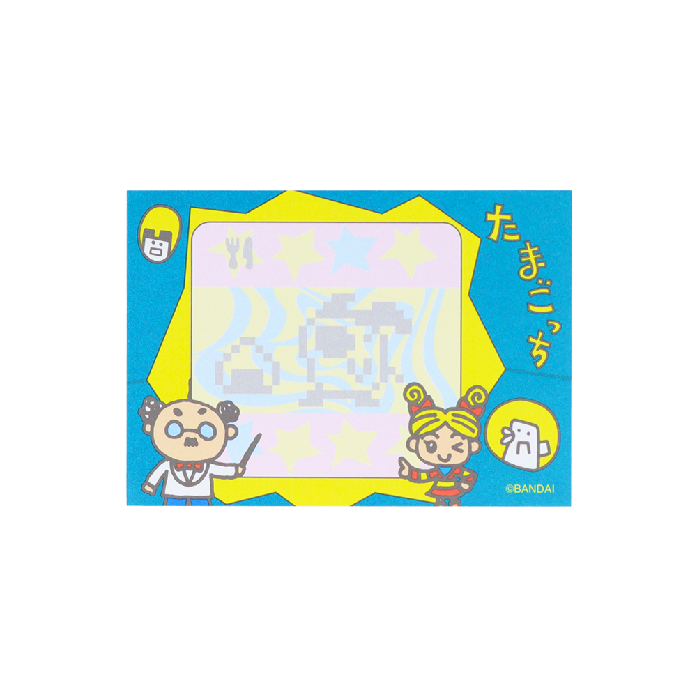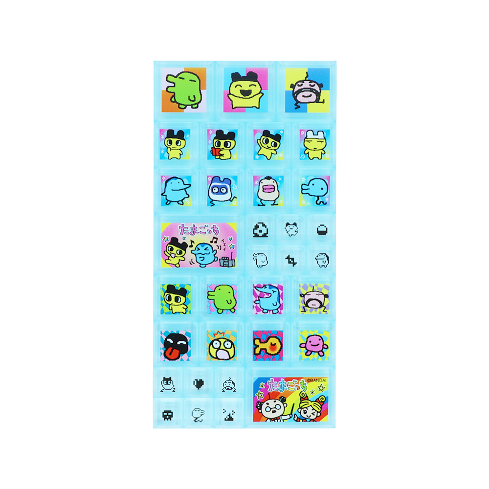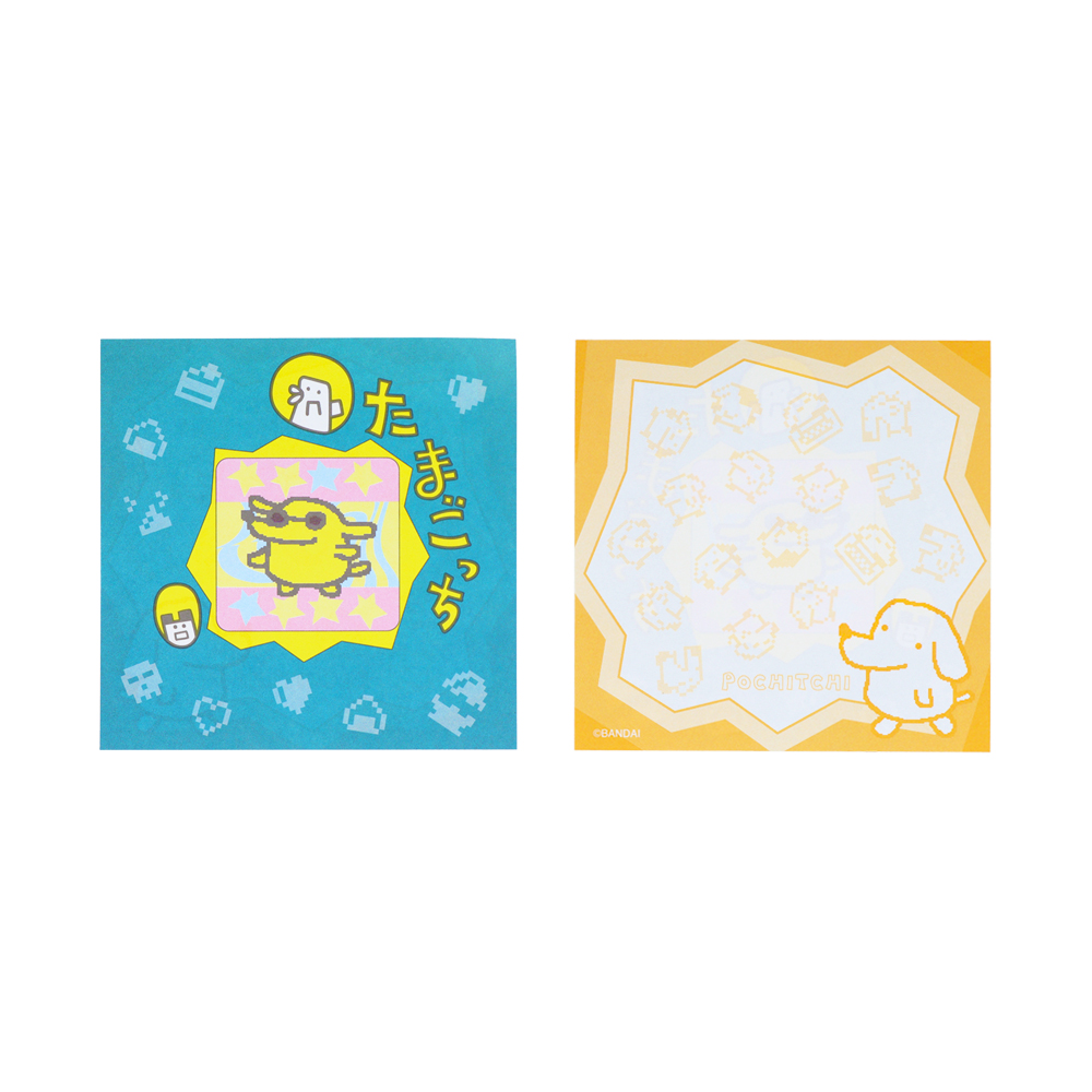 表と裏で違うデザインになっており、「たまごっち」たちの賑やかなイラストが目を引きます!