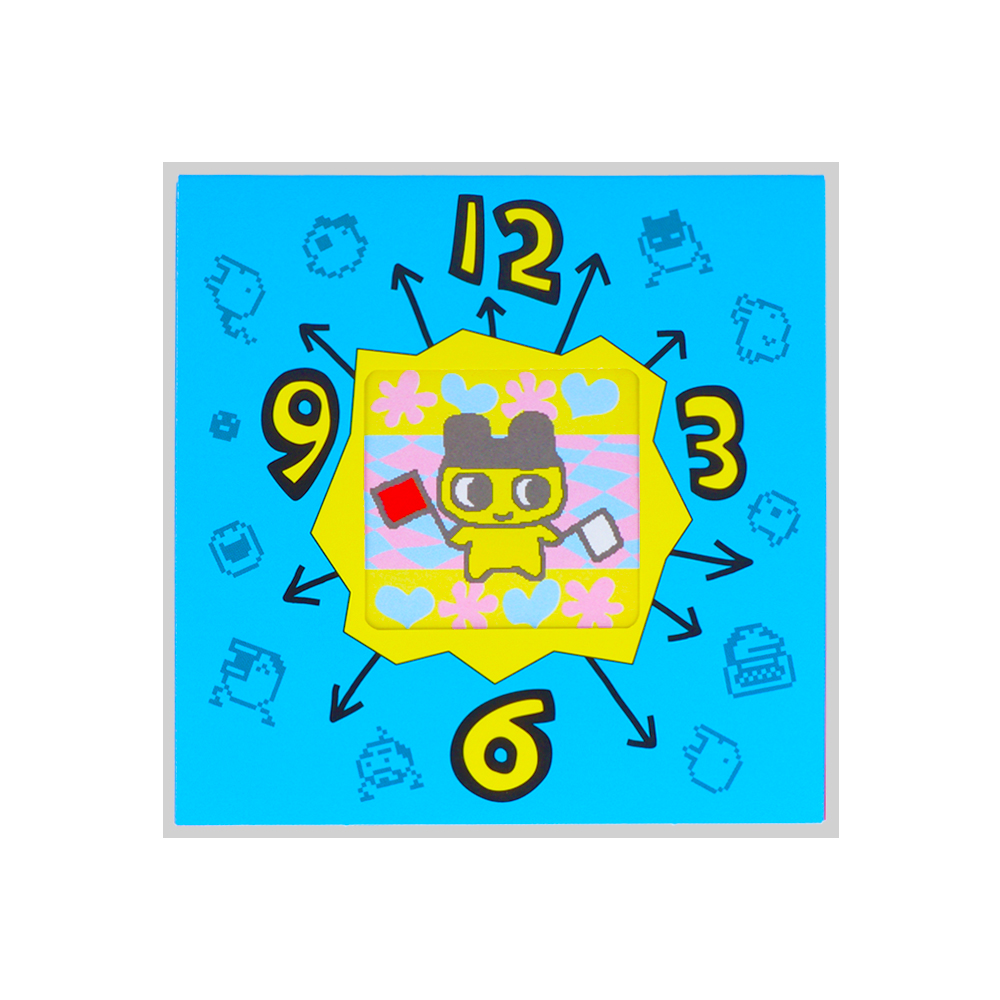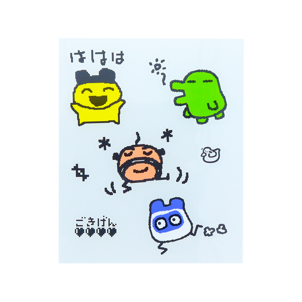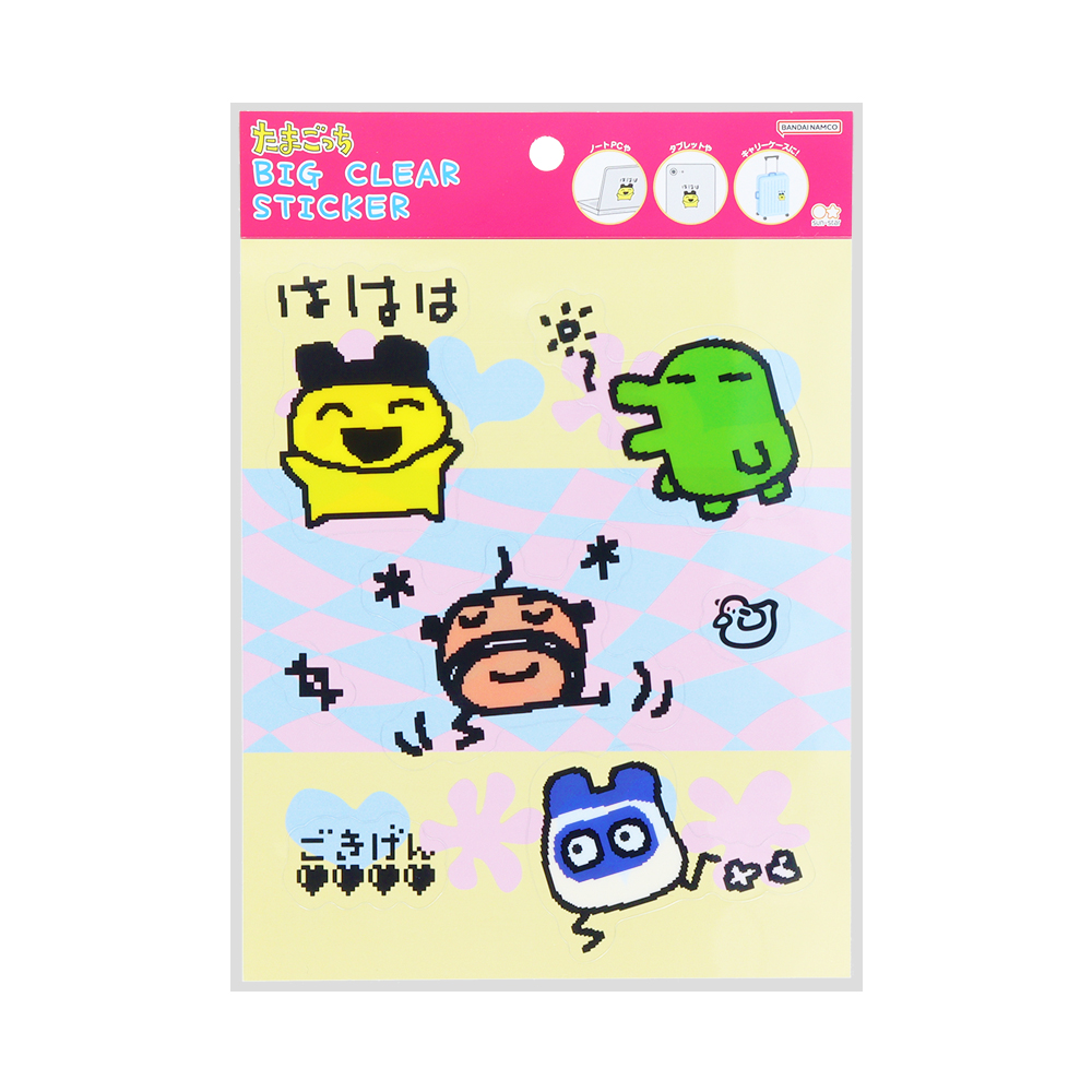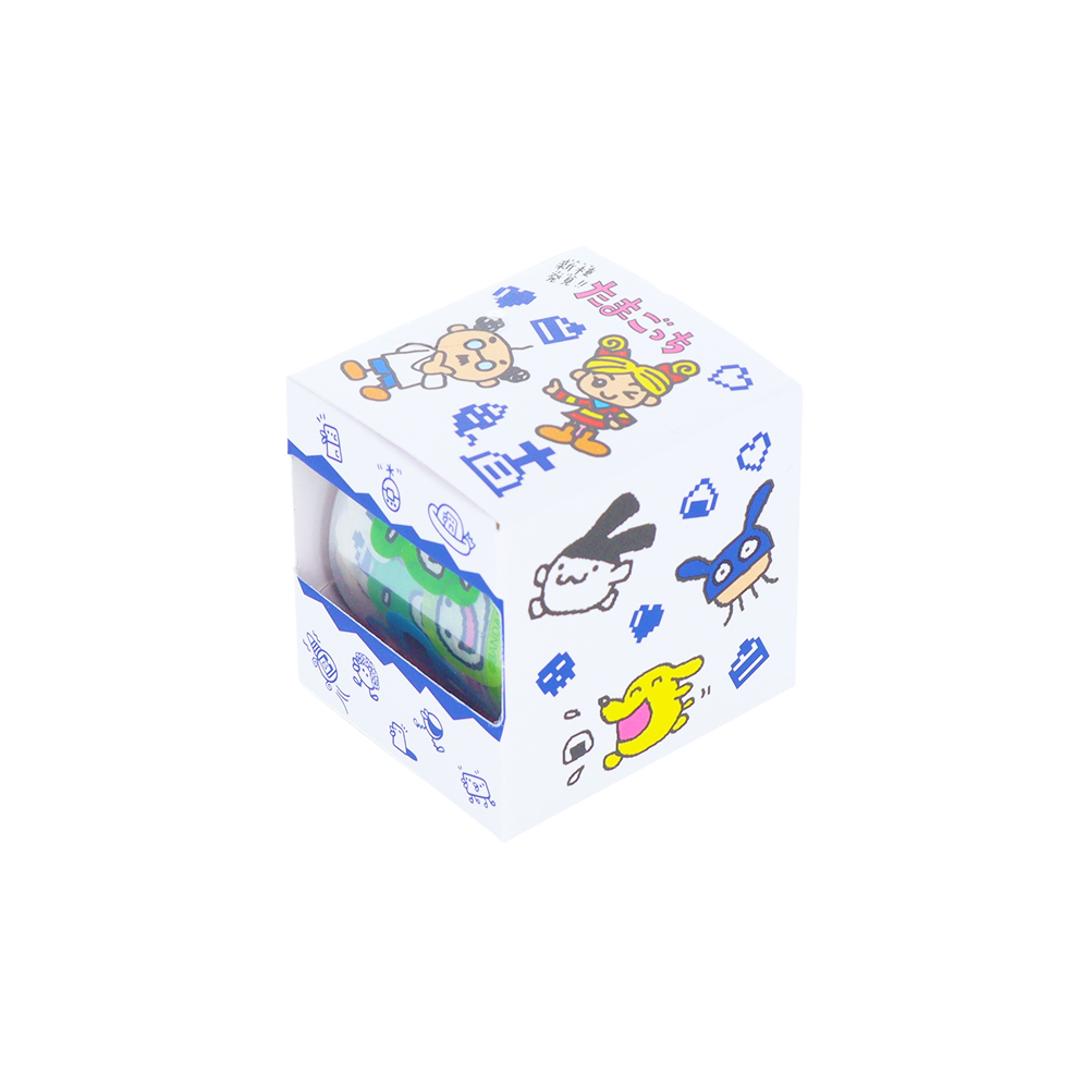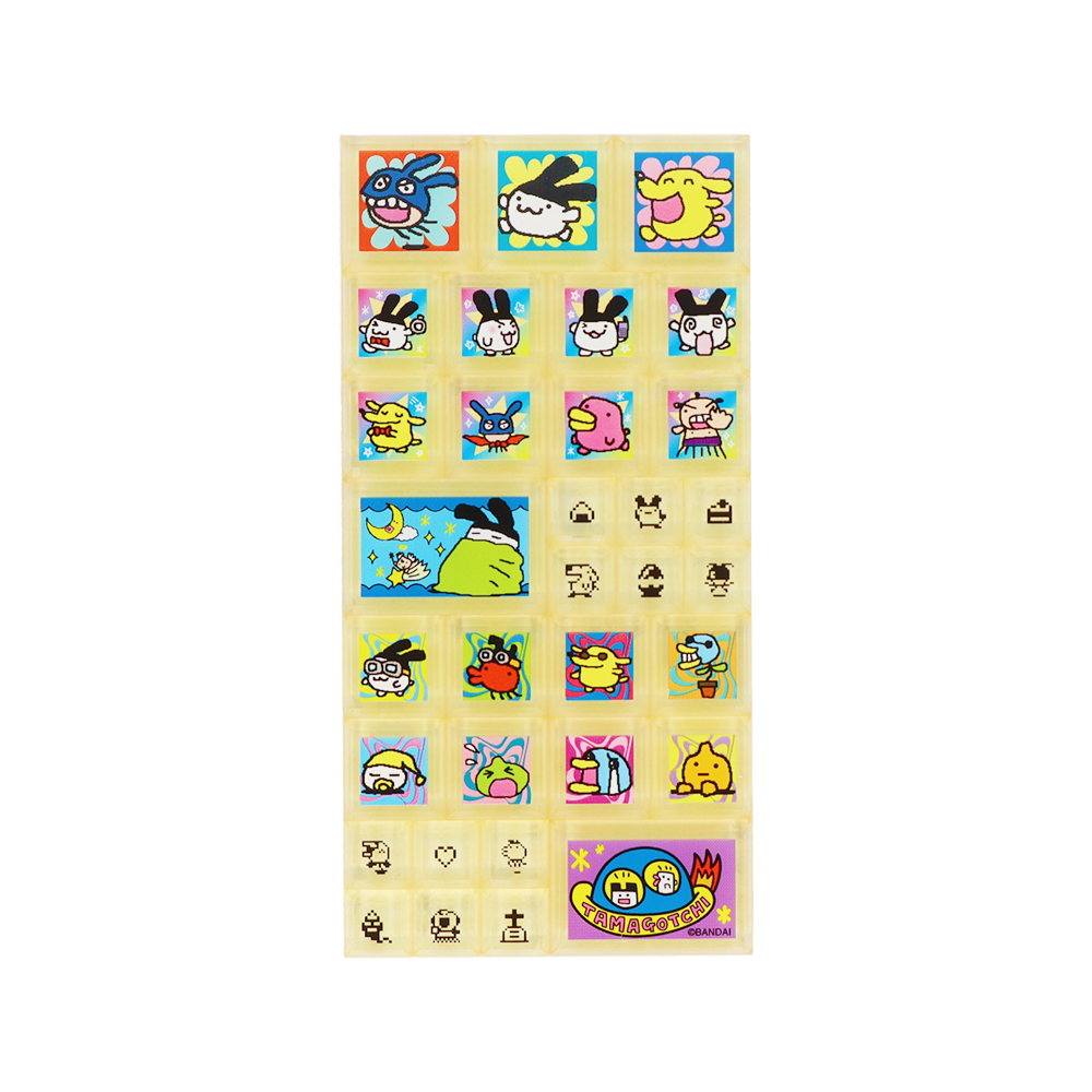 表と裏で違うデザインになっており、「たまごっち」たちの賑やかなイラストが目を引きます!