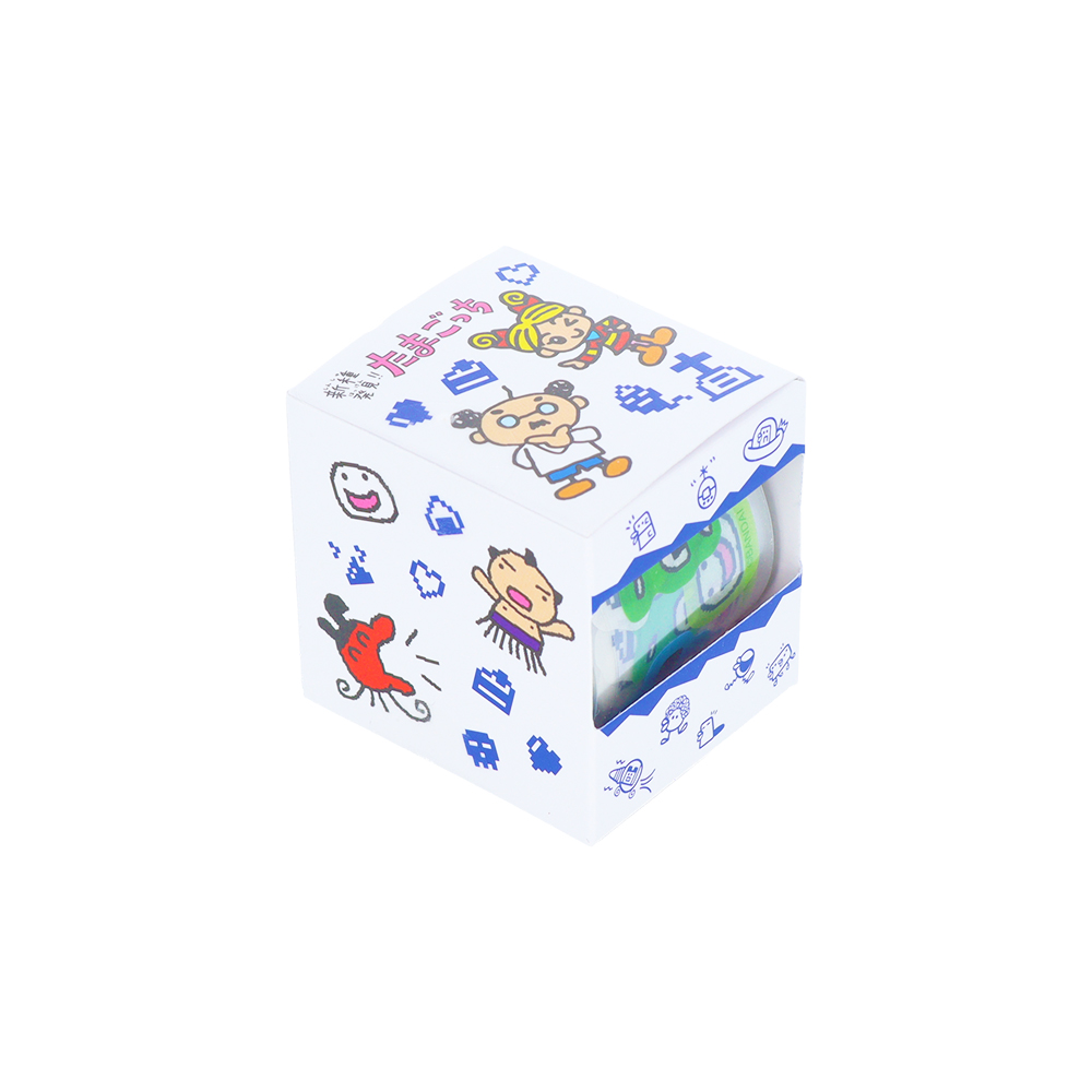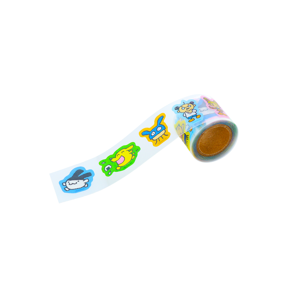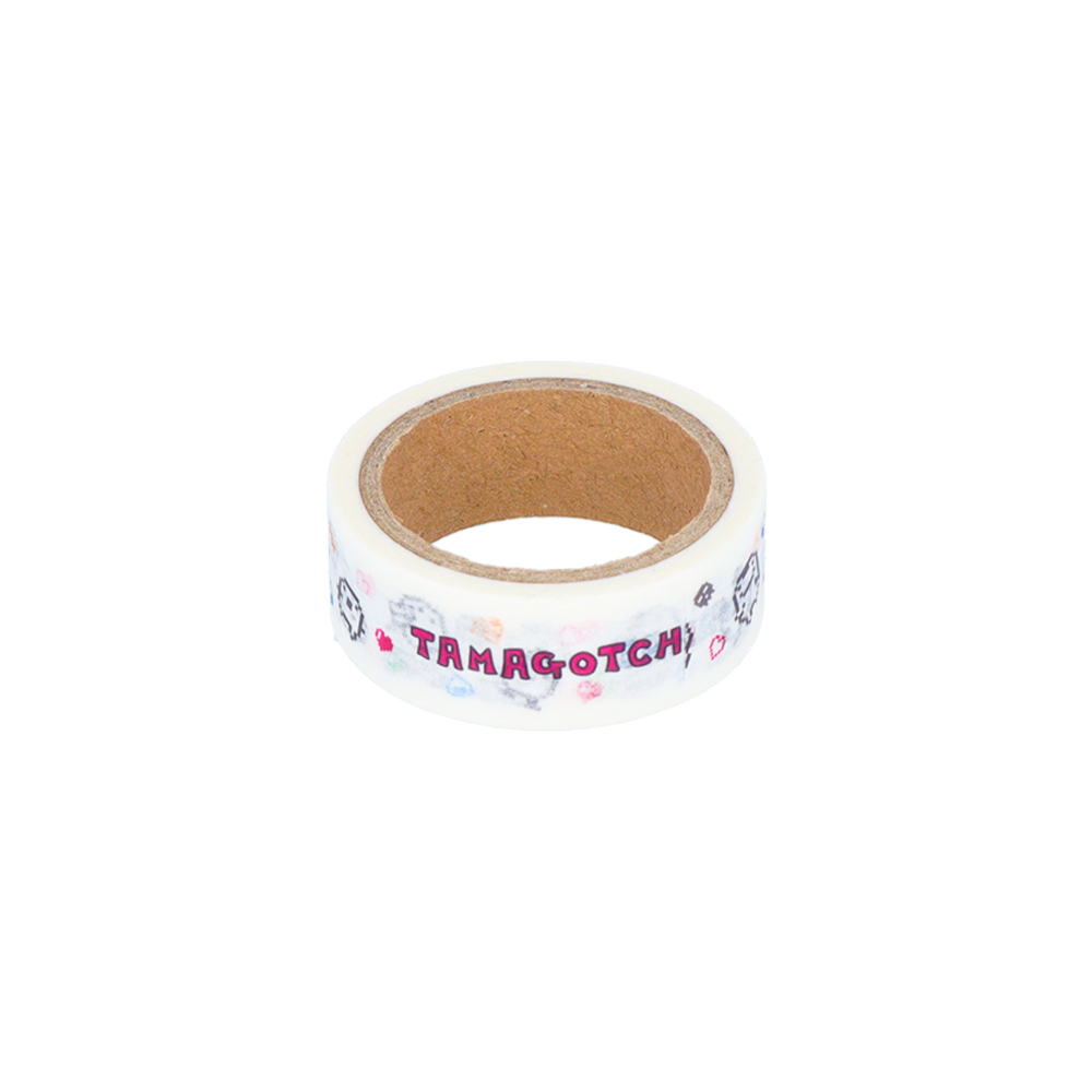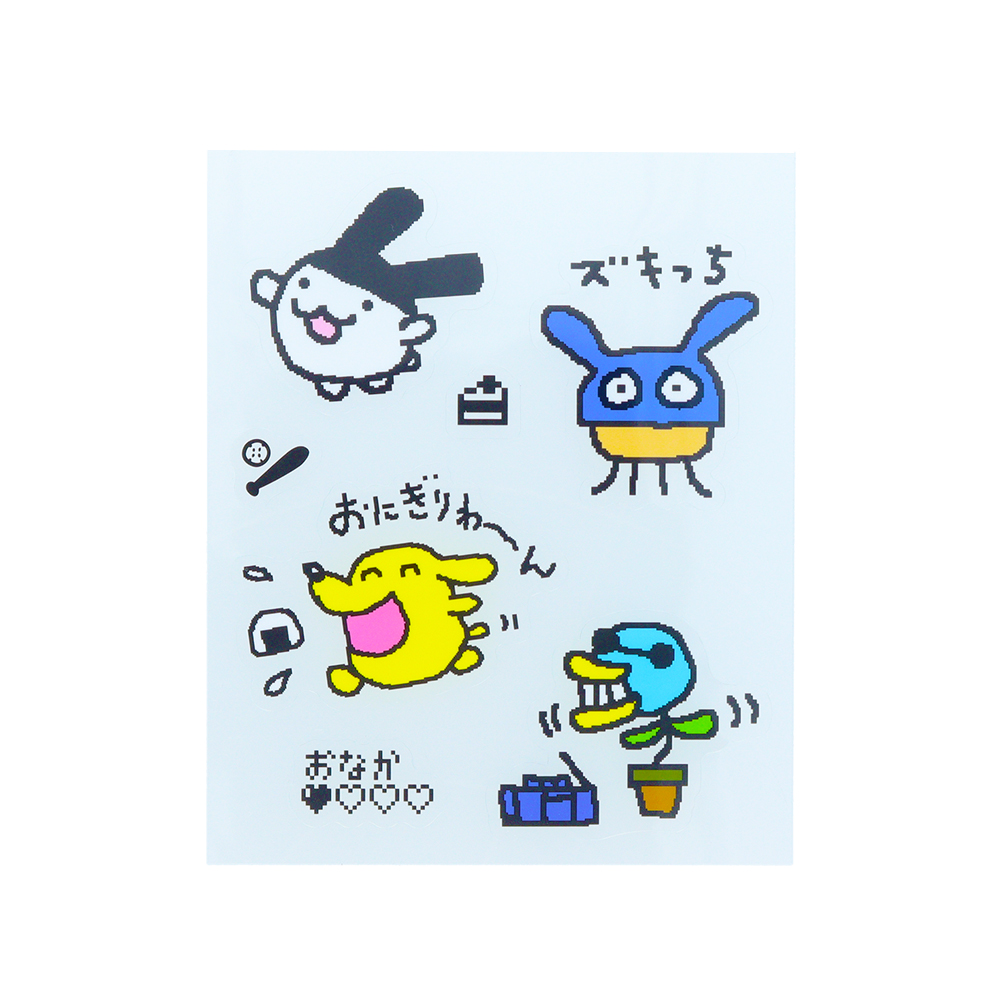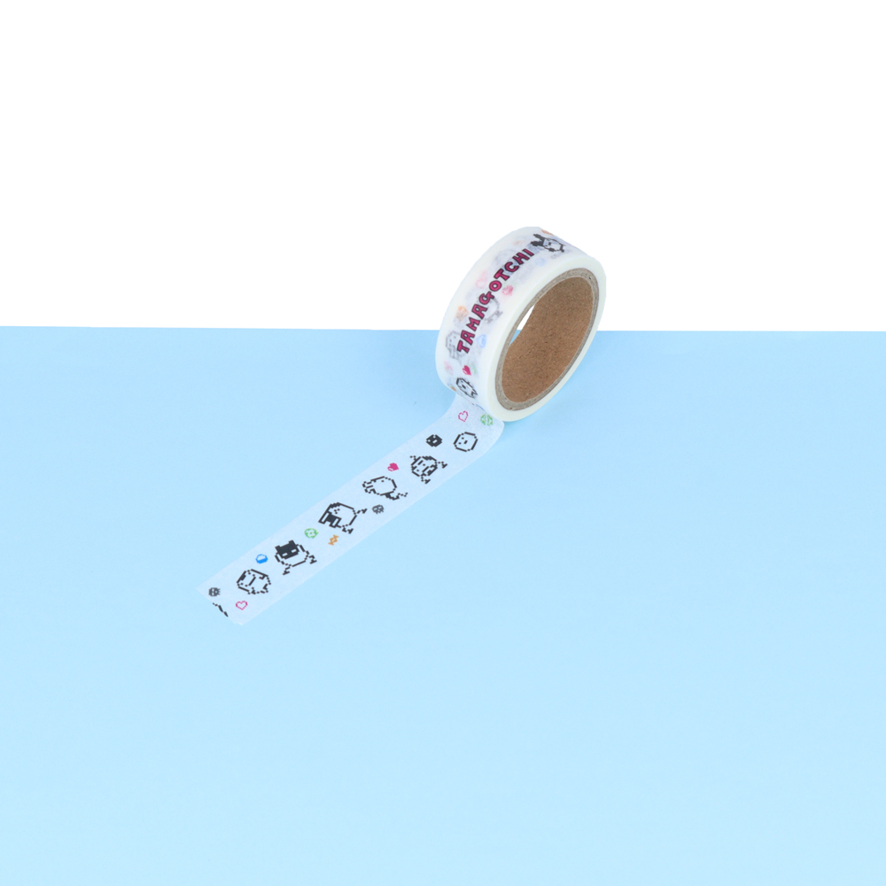 表と裏で違うデザインになっており、「たまごっち」たちの賑やかなイラストが目を引きます!