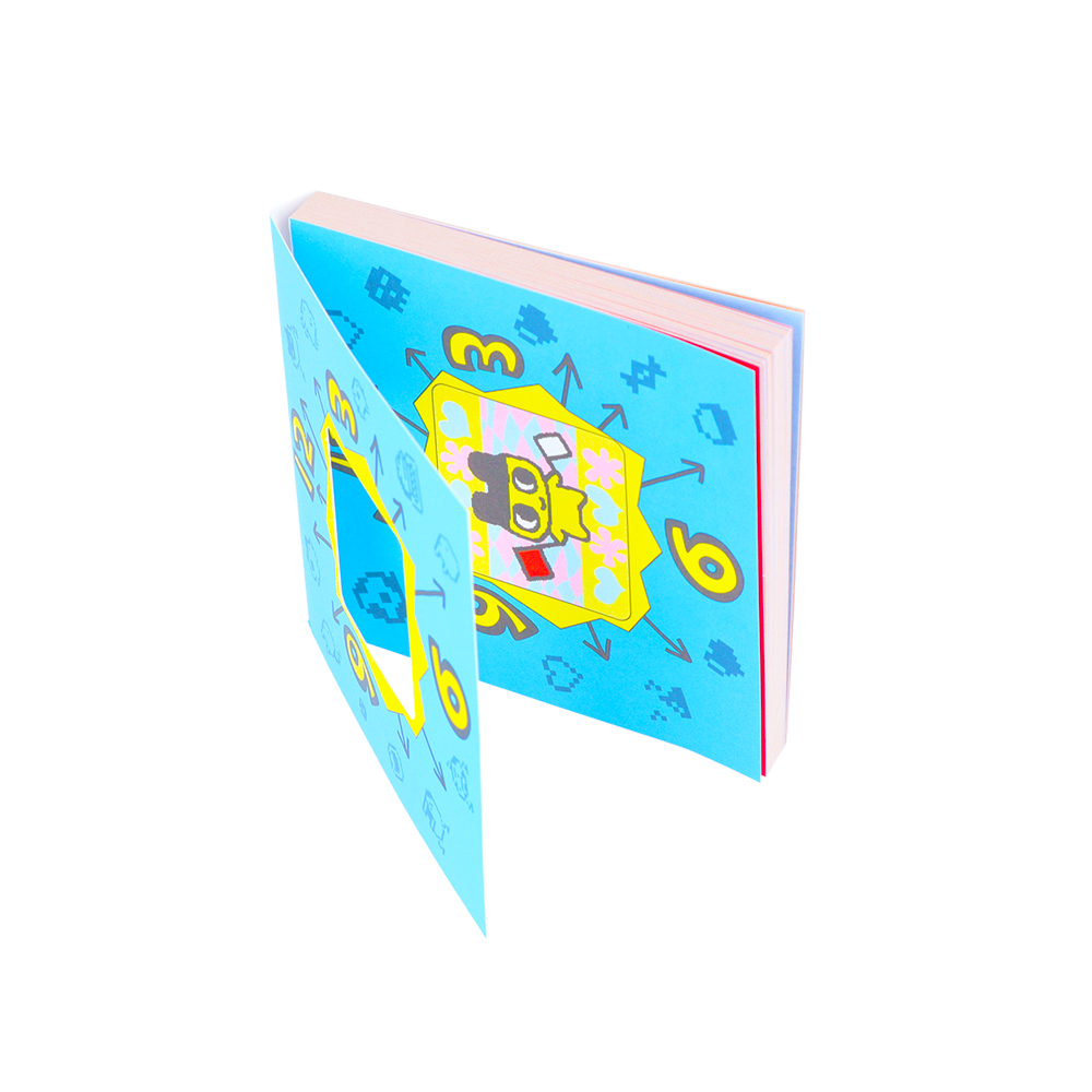本文を使うと、表紙の窓からみえる「たまごっち」が変わる仕掛けです。