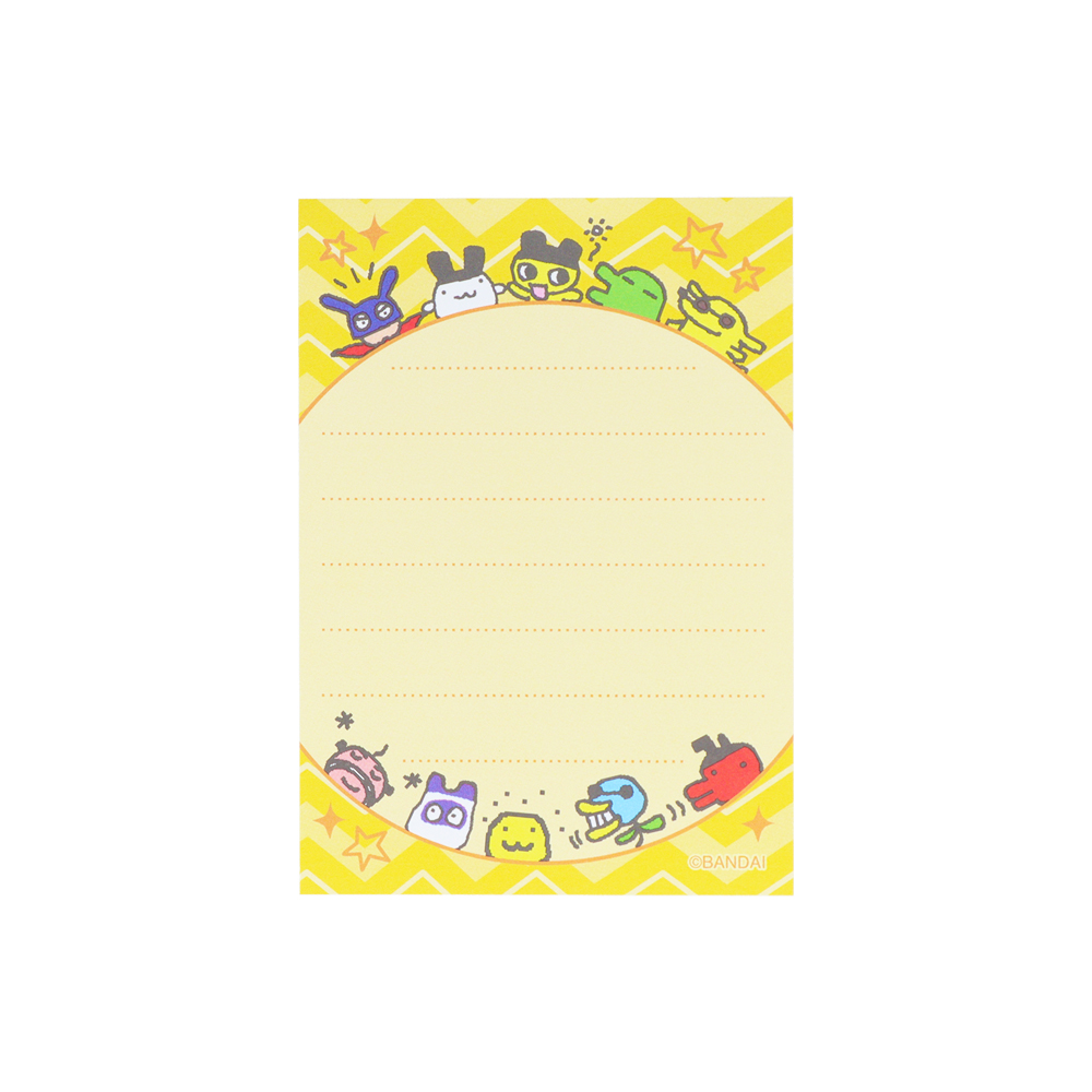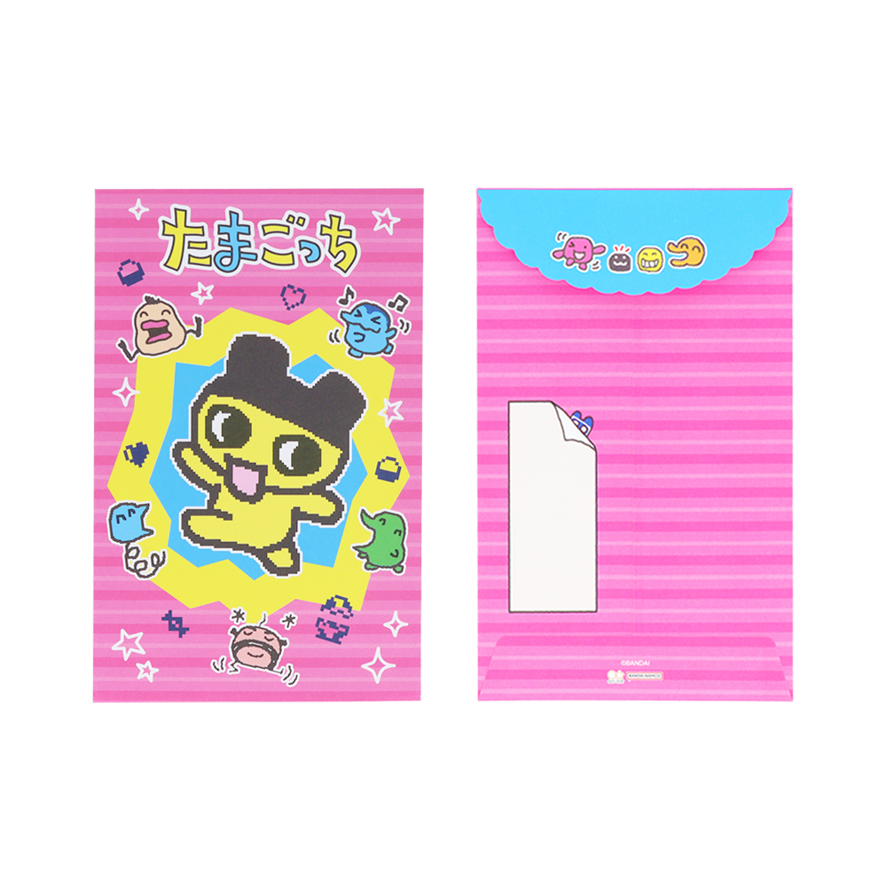 封筒にも「まめっち」の姿が描かれ、ほかの「たまごっち」たちもいる、賑やかなレターセットです☆