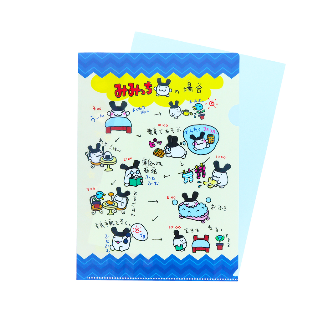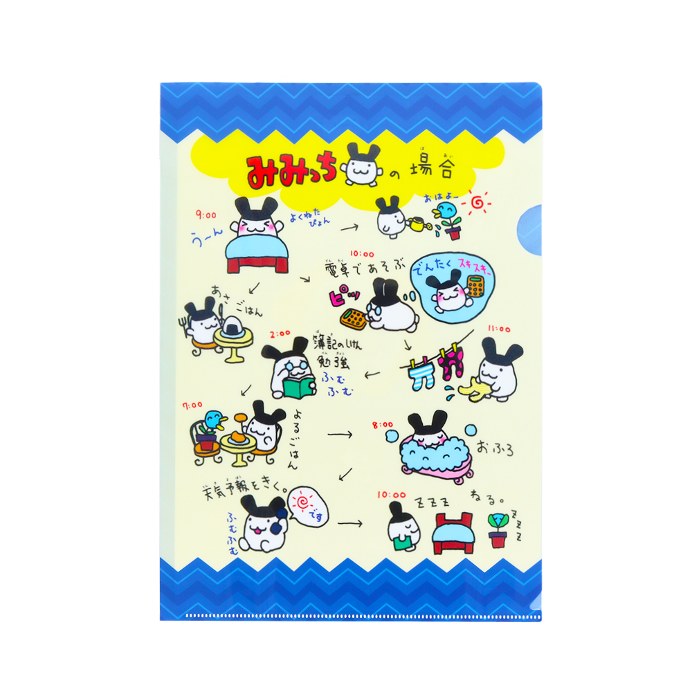 「みみっち」の1日をイラストで紹介するクリアファイル。