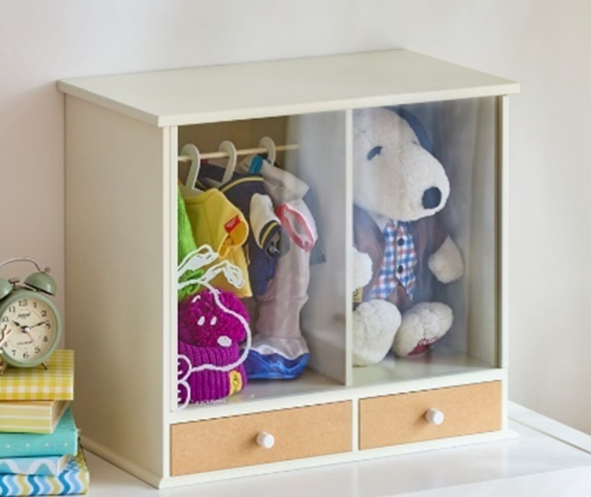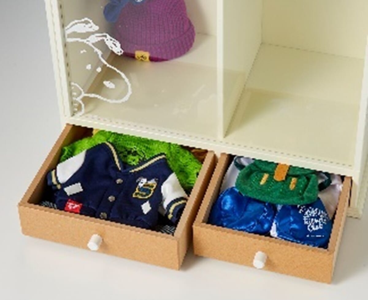 「スヌーピ」ーのぬいぐるみと、ぬいぐるみの衣装を一緒に飾って収納できる専用ケースも登場。