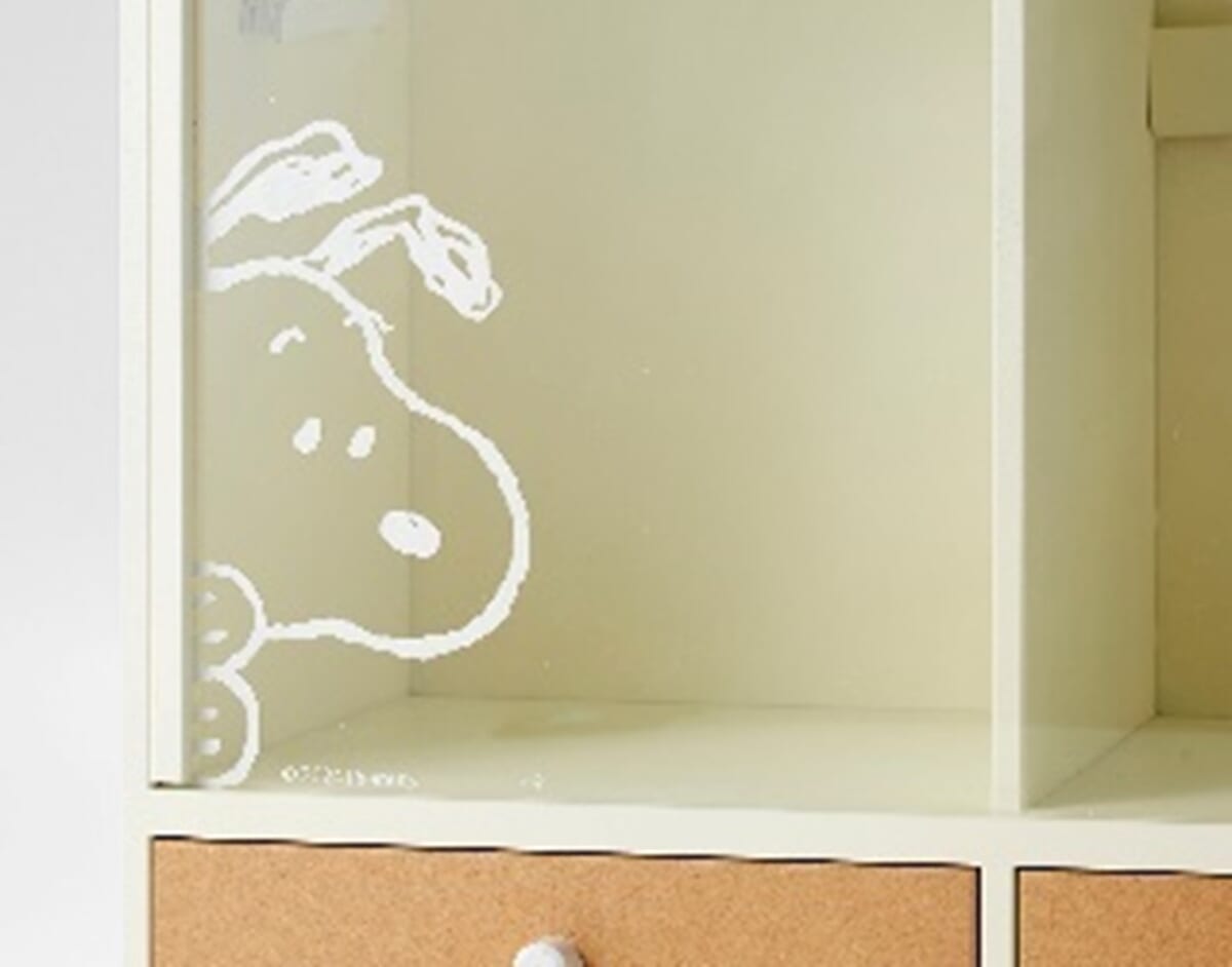 3つの引き出しは、取っ手部分に可愛らしい「スヌーピー」の足跡デザインを施しています。
