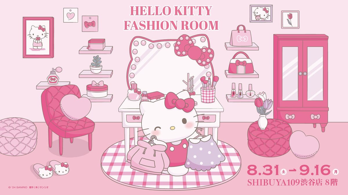 『HELLO KITTY FASHION ROOM』には、SHIBUYA109渋谷店の人気ブランドと「ハローキティ」のコラボアパレルを展示するほか、グッズを使って写真が撮れるかわいいフォトスポットも用意。