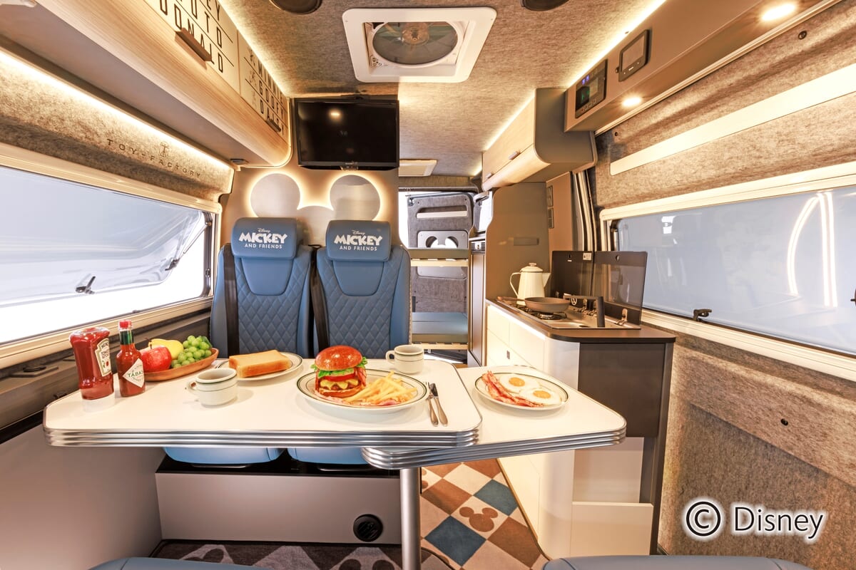 「DA VINCI 5.4 <Disney> Dream Traveller」は、ロードトリップ、ルート66をテーマにした世界観を軸に、旅の途中で立ち寄ったダイナーカフェで休憩するようなシチュエーションをイメージし、ミッキー&フレンズのアートを施した、ワクワクが詰まったキャンピングカーです☆
