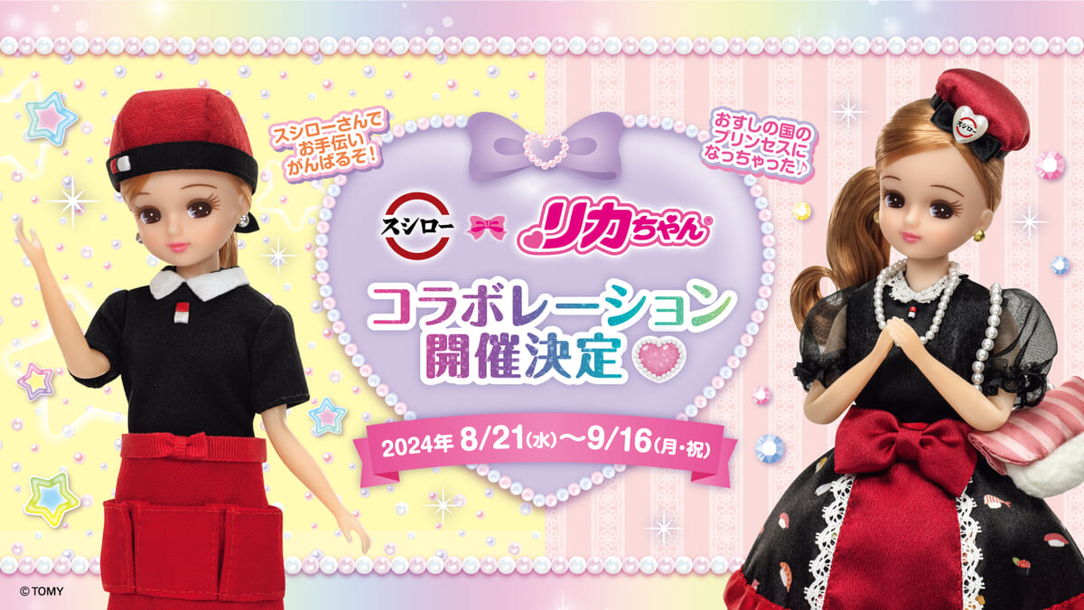 回転寿司チェーン「スシロー」と「リカちゃん」とコラボ企画は2024年年8月21日(水)より全国のスシロー店舗にて開催です☆