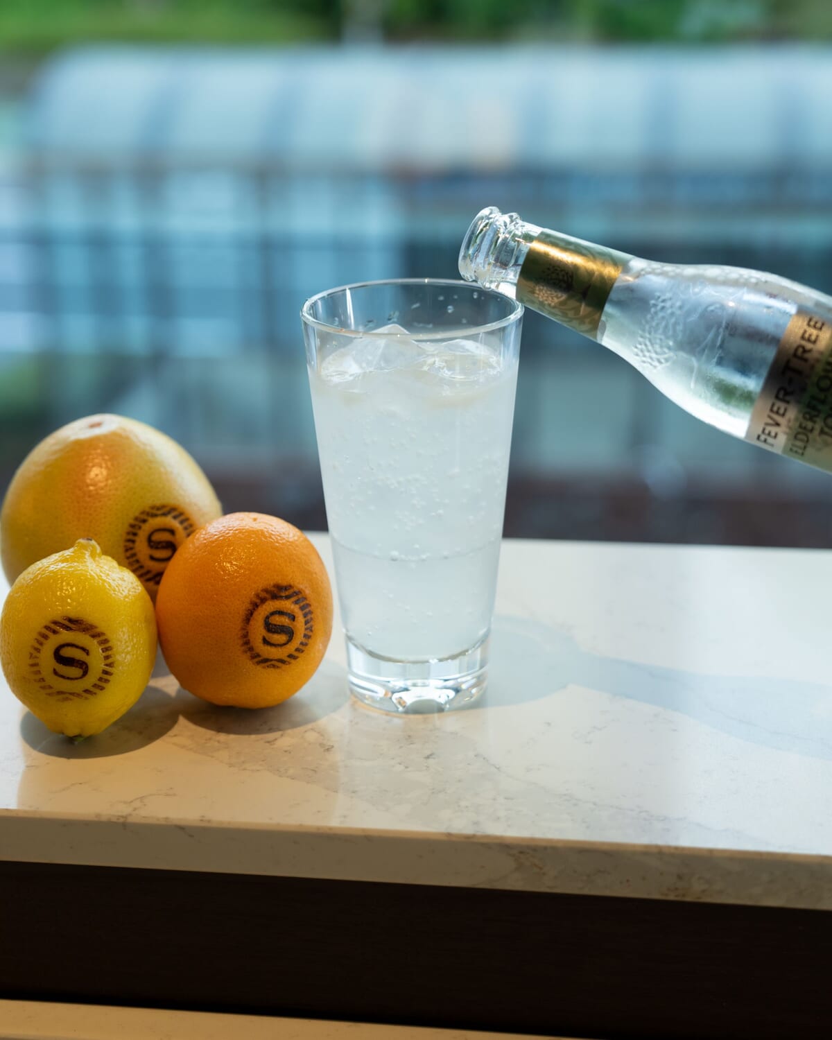 搾りたての果汁と、エルダーフラワーが香るトニックウォーター「FEVER-TREE」を合わせた爽やかなドリンクは、レモン、オレンジ、グレープフルーツの3種から選択可能。