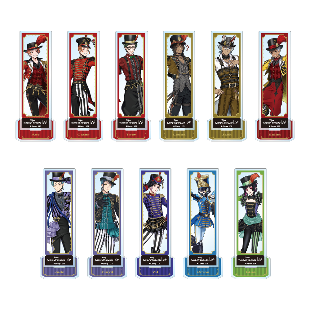 華やかな衣装を纏った寮生たちのアートが楽しめるアクリルスタンドコースター。
