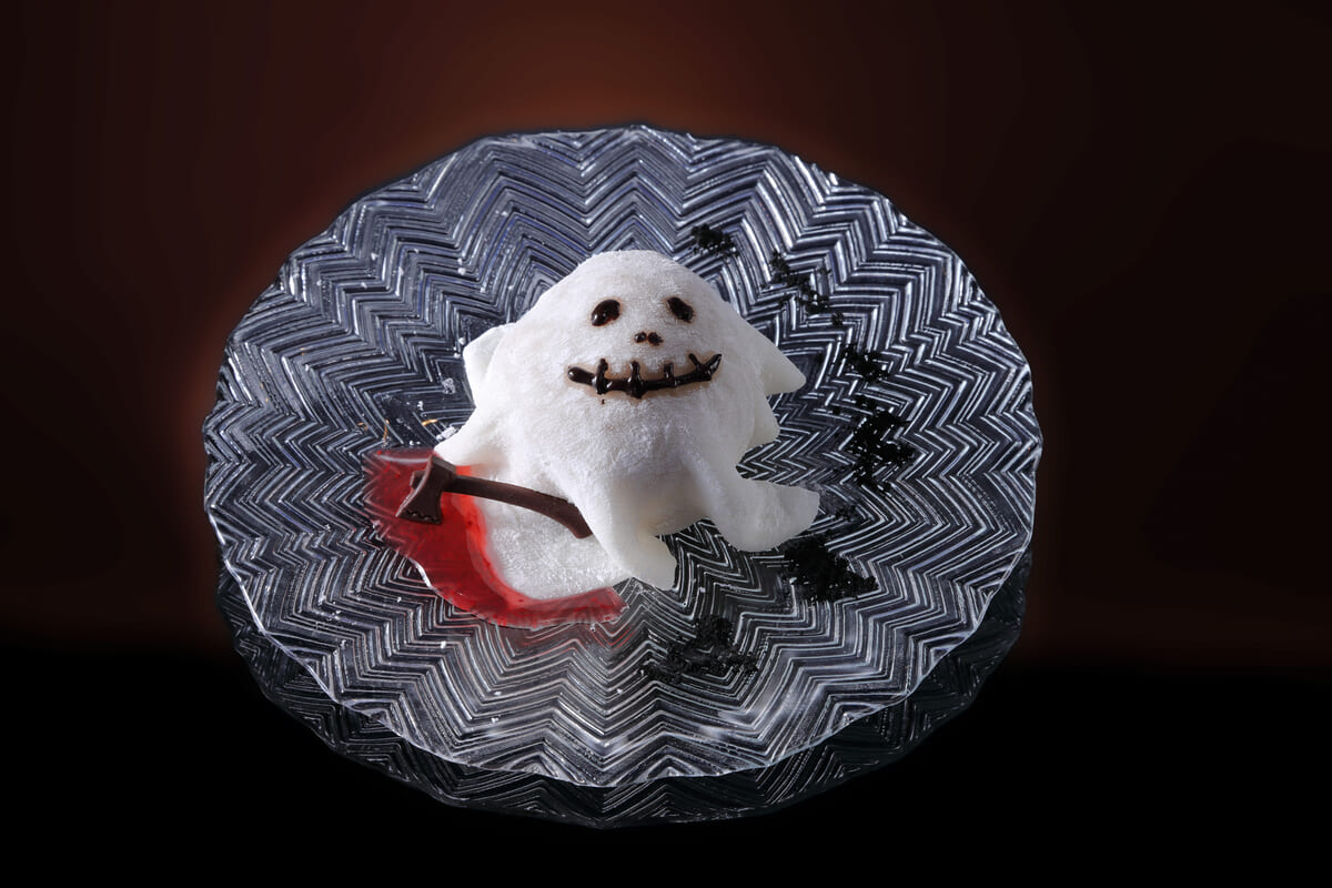 たっぷりのモンブランクリームをふんわりとしたぎゅうひで包み、おばけをイメージしたインパクト抜群のユニークな一品です。