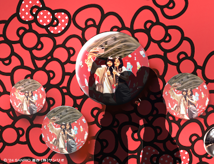 さらに「ハローキティ」キティのリボンに包まれる「ミラーフォトスポット」も登場。