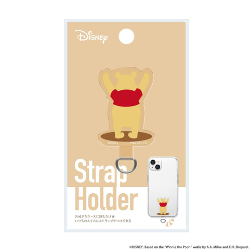 「くまのプーさん」の「ダイカット ストラップホルダー」は、両手を上げたポーズ。