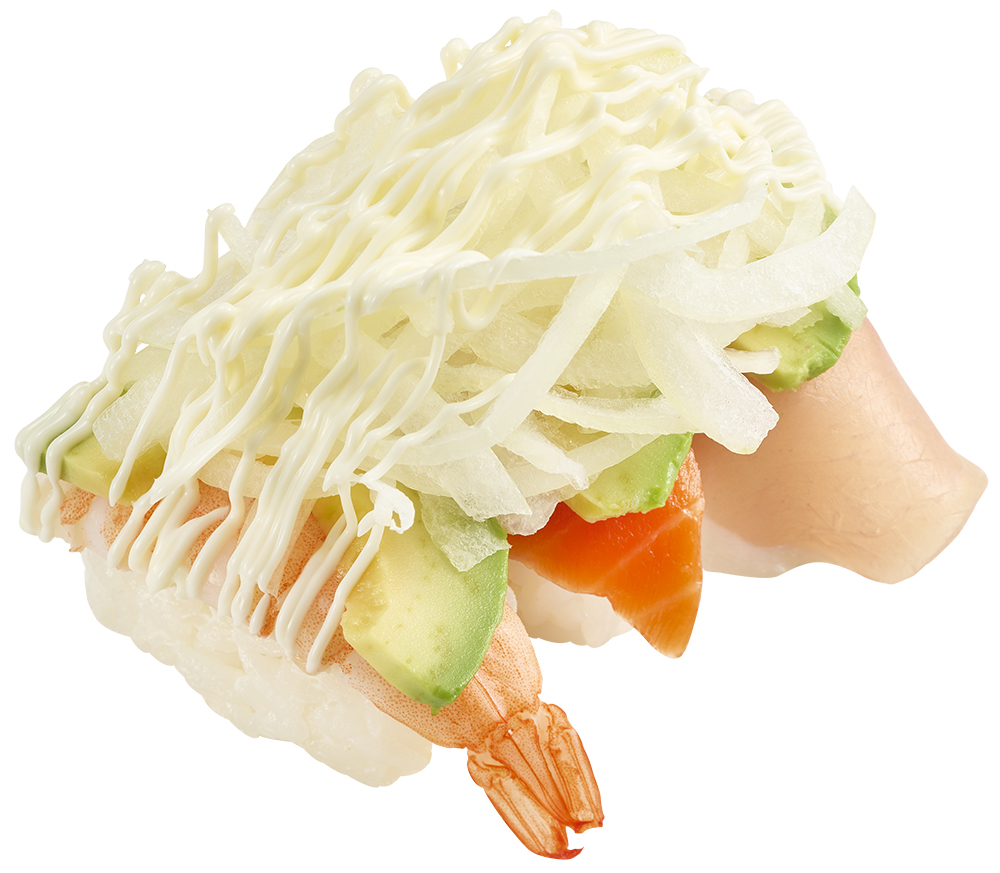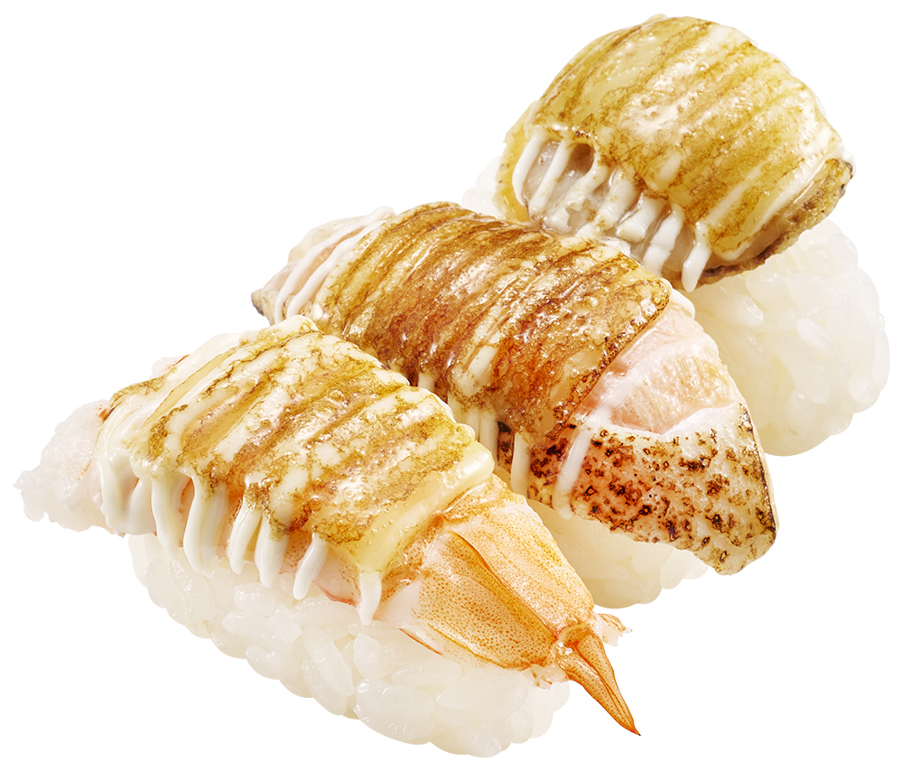人気の炙りネタを組み合わせた「チーズマヨ炙り3貫盛り」