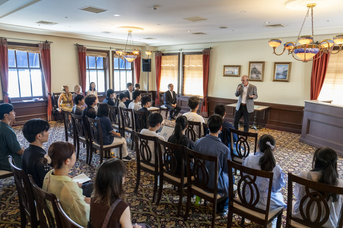 式典にはUSJ奨学生のOBやOGの皆さんもお祝いにかけつけ、後輩となる第14期生の高校生たちにエールを送りました。