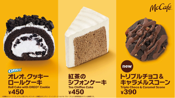 また、その他にもロールケーキやシフォンケーキなどもMcCafé by Barista 併設店舗と一部店舗の約360 店舗限定で味わえます。