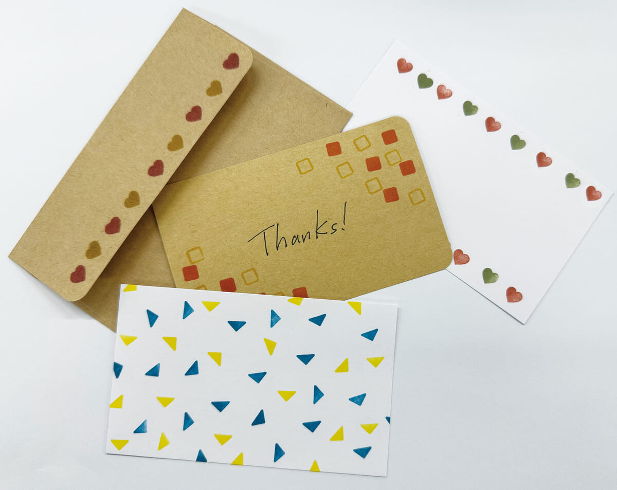 濃淡をつけたり色を重ねたりと、スタンプならではの風合いも楽しめ、カードのデコレーションにも使えます。