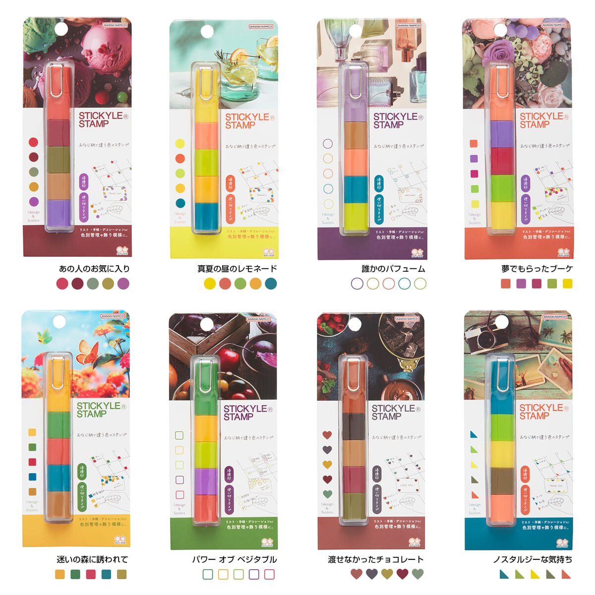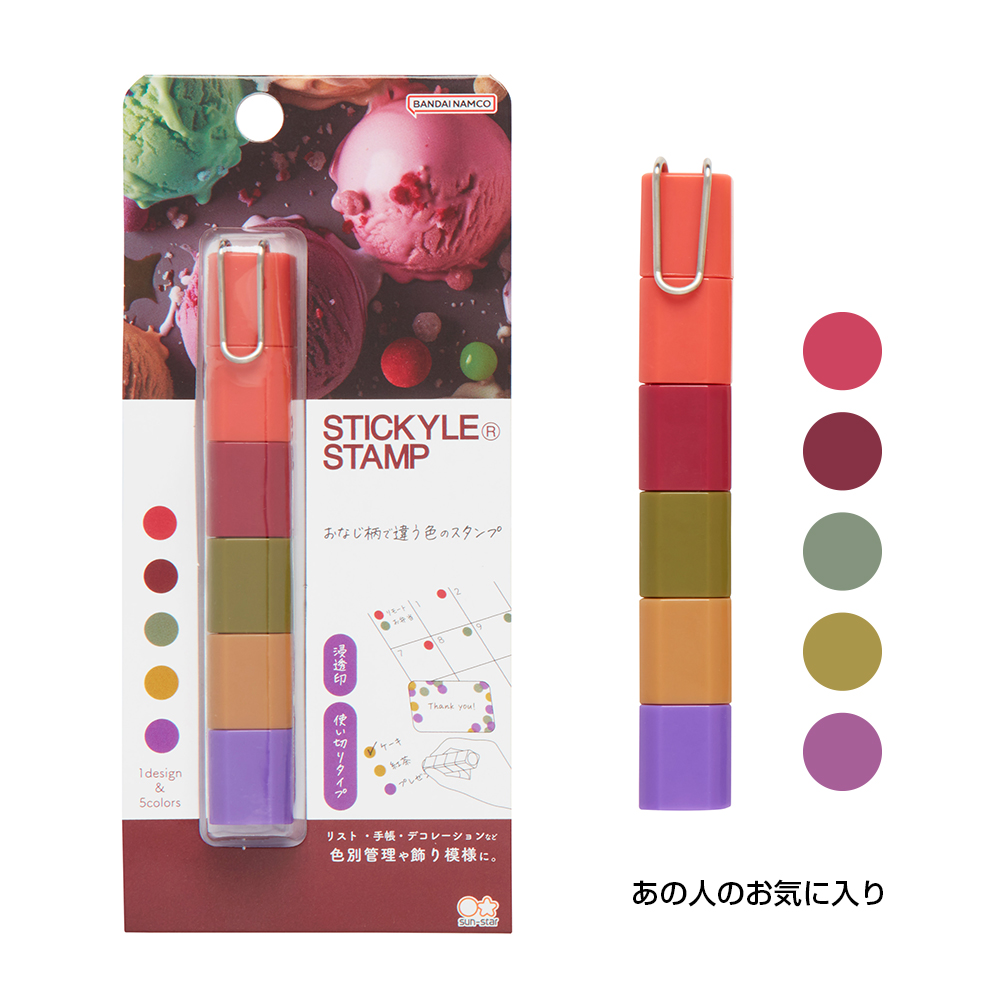 そんな「スティッキール」シリーズから、同じデザインのスタンプ5色が1本にまとまった「STICKYLE STAMP(スティッキールスタンプ)」が登場します!