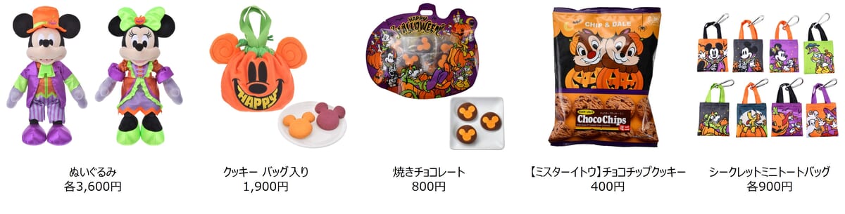 毎年大人気のバラエティ豊かなお菓子は、かぼちゃデザインの巾着バッグ入りクッキーや、「チップ」と「デール」をデザインしたハロウィーンパッケージのミスターイトウのチョコチップクッキーなど、パーティーでお友達とシェアしたり、プチギフトにもおすすめです。