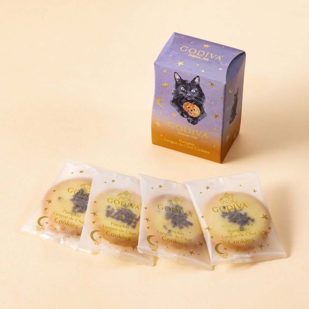 限定フレーバーの「パンプキン ラングドシャクッキー」を詰め合わせた「ゴディバ ブラックキャット コレクション パンプキン ラングドシャクッキー 4枚入」