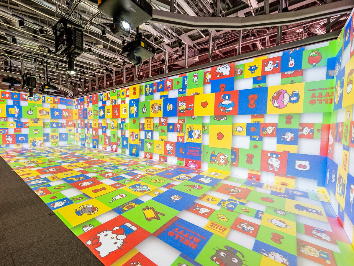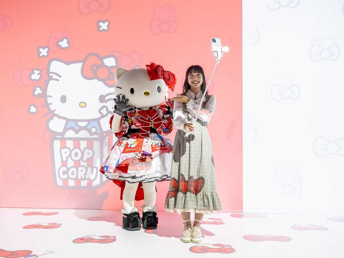 会場内の「イマーシブ体験エリア」に入ると、ステップを踏むたびにインタラクティブにリボンが現れる「ステップリボンスポット」、3月にMAISONdesとコラボしリリースした『ポップコーン!! feat. ハローキティ, なるみや, 原口沙輔』のポップな音楽に合わせたリズミカルな映像でハローキティ史上最高の没入体験ができる「イマーシブスポット」、