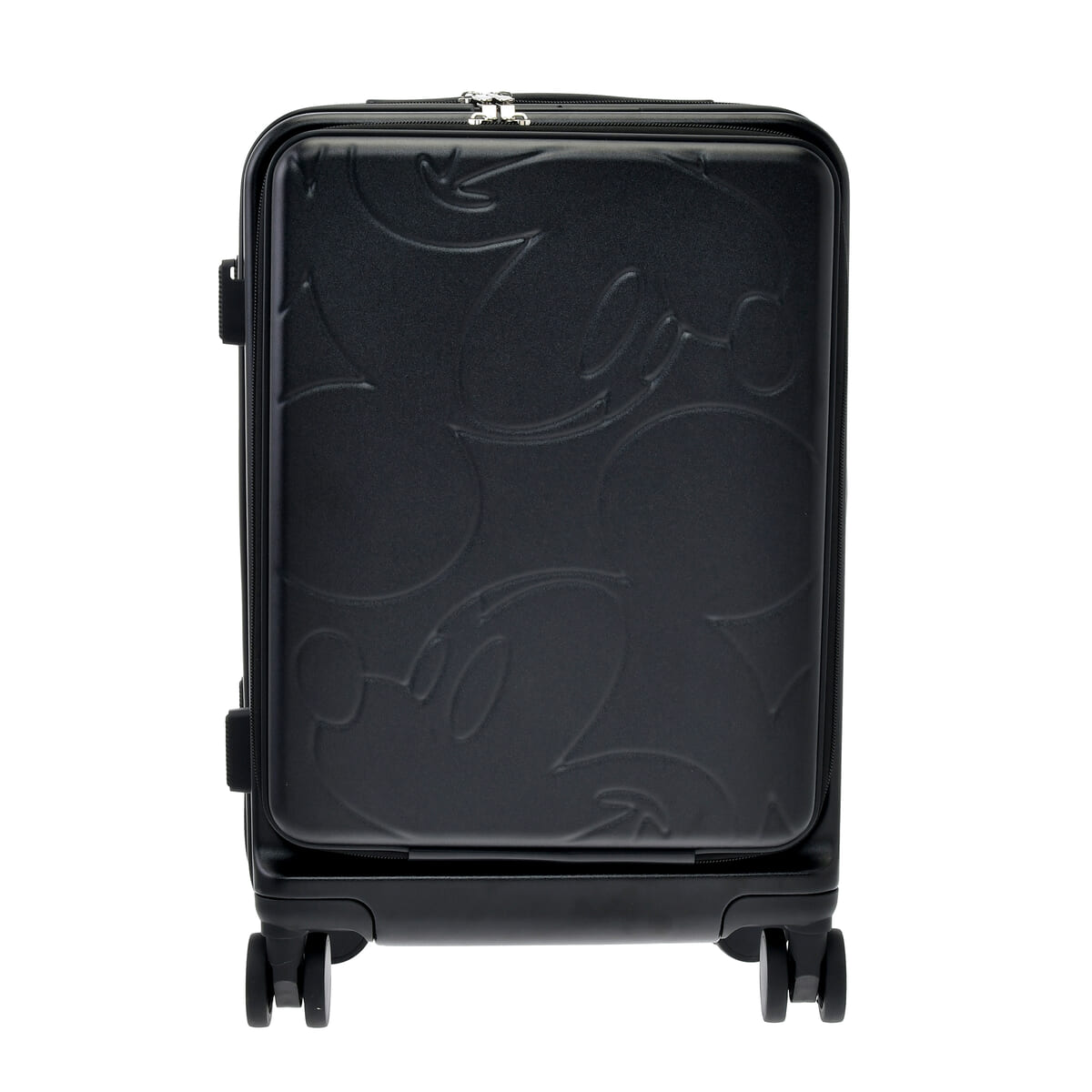 ブラックとアイボリーの2色展開のスーツケースは、ミッキーフェイスのエンボス加工やセンターにデザインしたミッキーフェイスのワンポイントが上品なアクセントとなった、大人かわいいデザインです。