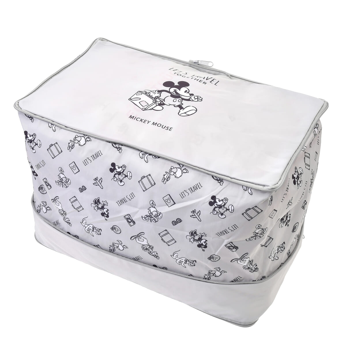 「ミッキーマウス」をデザインした、ファスナーを閉めるだけで衣類が圧縮できるポーチのMサイズ。
