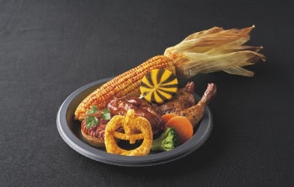 ポークリブ、ローストチキン(ハーフ)の豪華な内容に加え、ジャック・オ・ランタン型パイなども含まれた、特別なメニューです。
