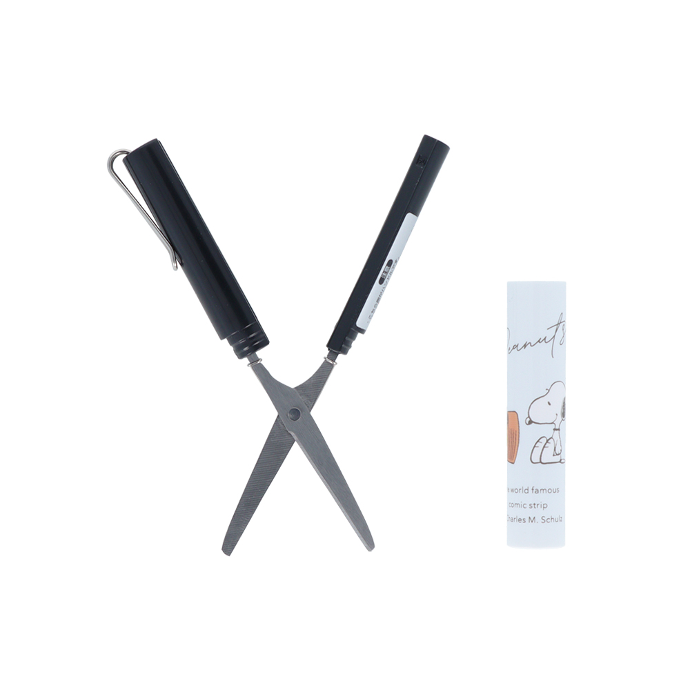 モノトーン調のカラーに、「スヌーピー」と「ウッドストック」のイラストが映える「スティッキールはさみ」