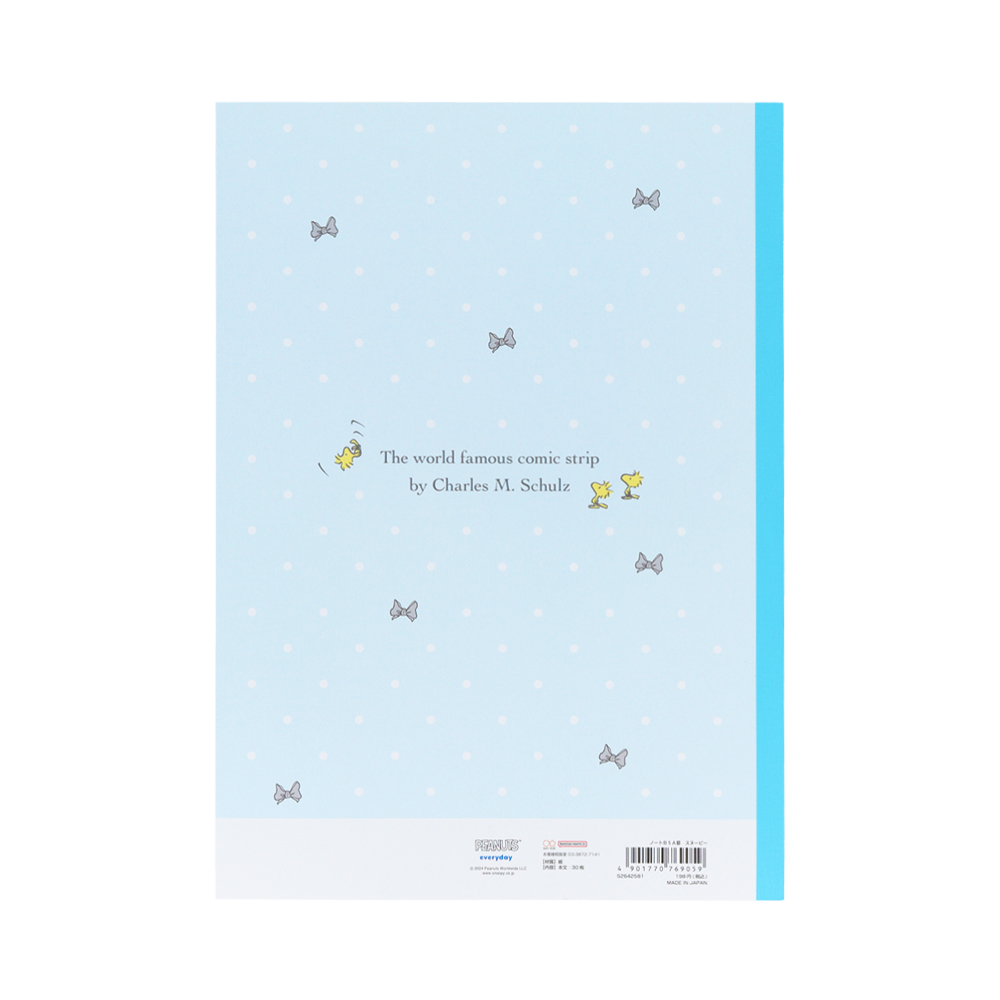 爽やかなブルーの表紙に、リボンでおめかしした「スヌーピー」たちがかわいいデザインです☆