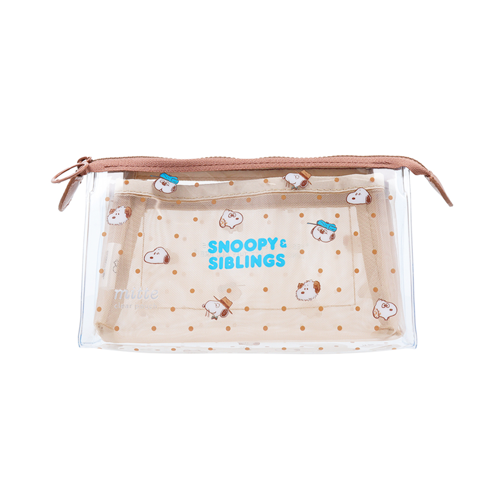 「スヌーピー」と兄弟たちがそろうデザインの「クリアポーチ メッシュ マチ mitte」