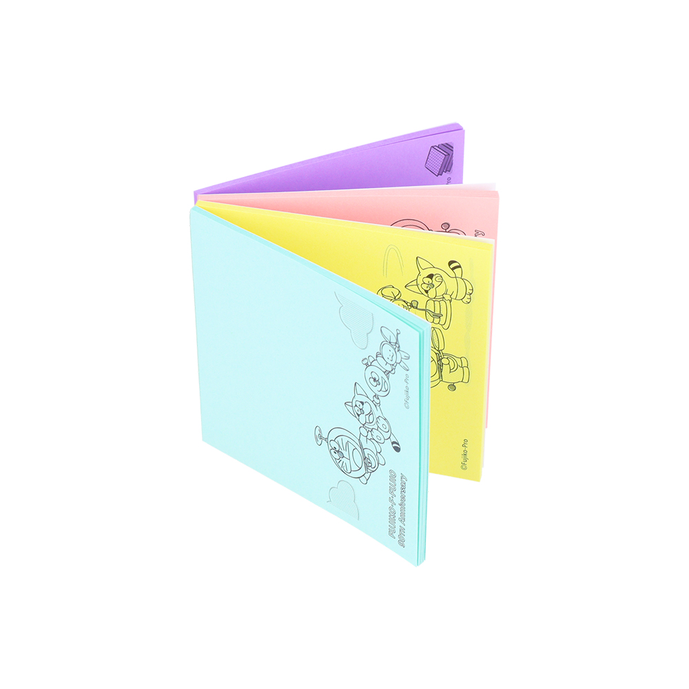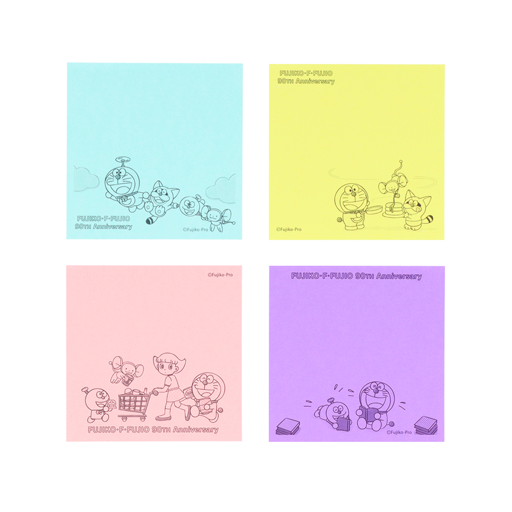 4種類のメモにも、それぞれ同じポーズで並ぶ、藤子・F・不二雄作品のキャラクターたちが描かれています☆