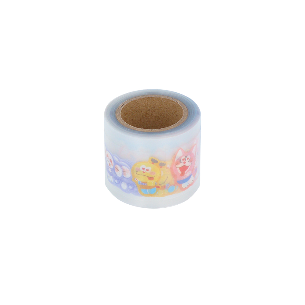 思い思いに楽しく過ごす姿を描いた、「ラッピングペーパー」柄のプチシール。