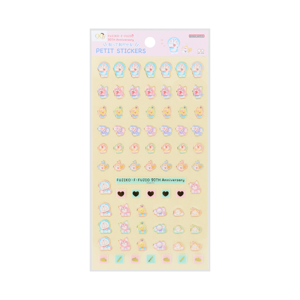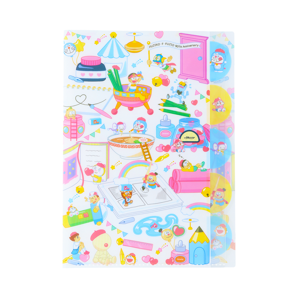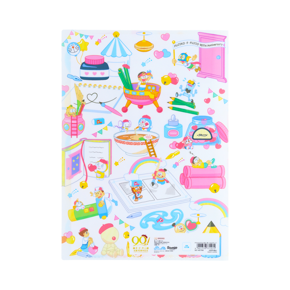 藤子・F・不二雄作品のキャラクターたちを描いた、生誕90周年記念グッズ。