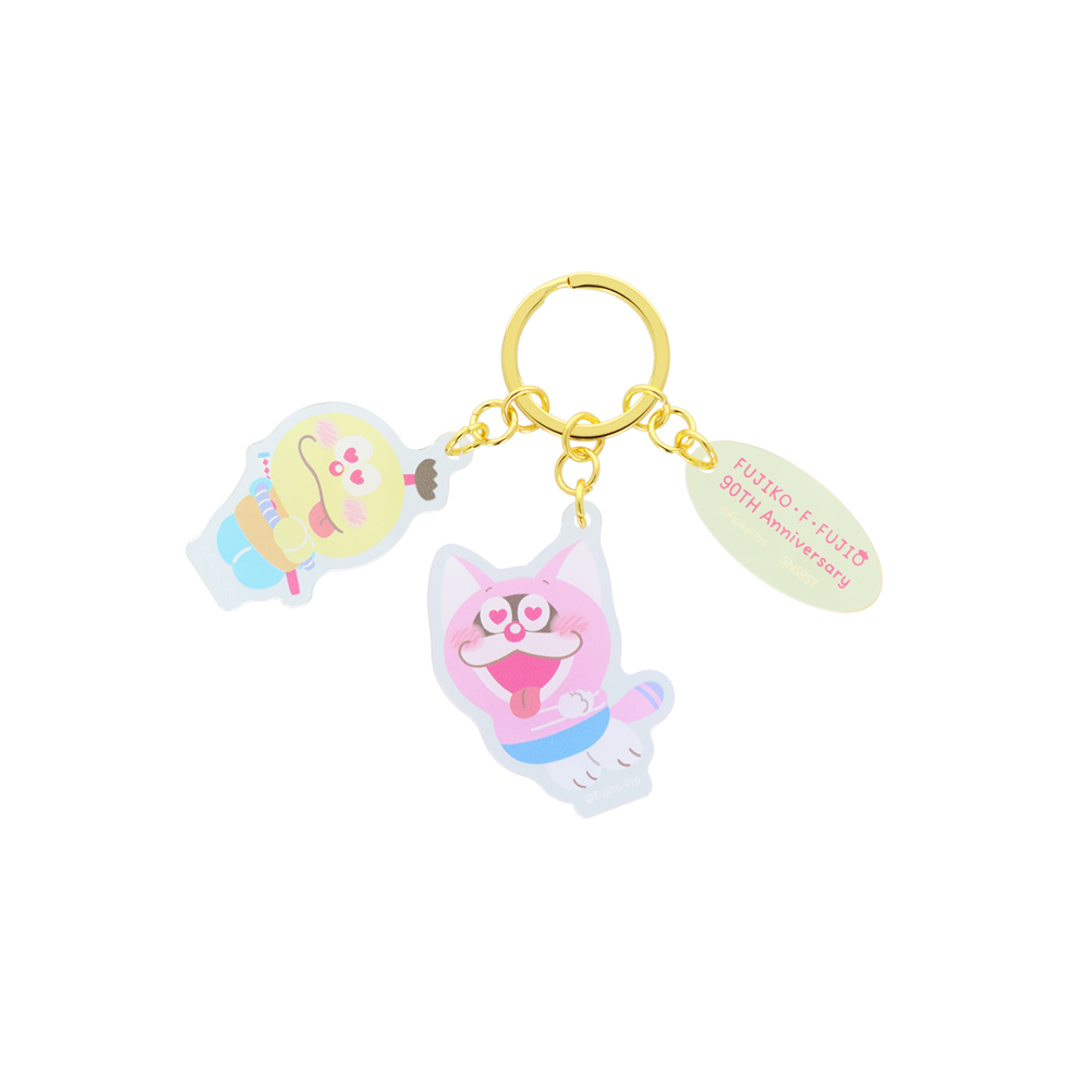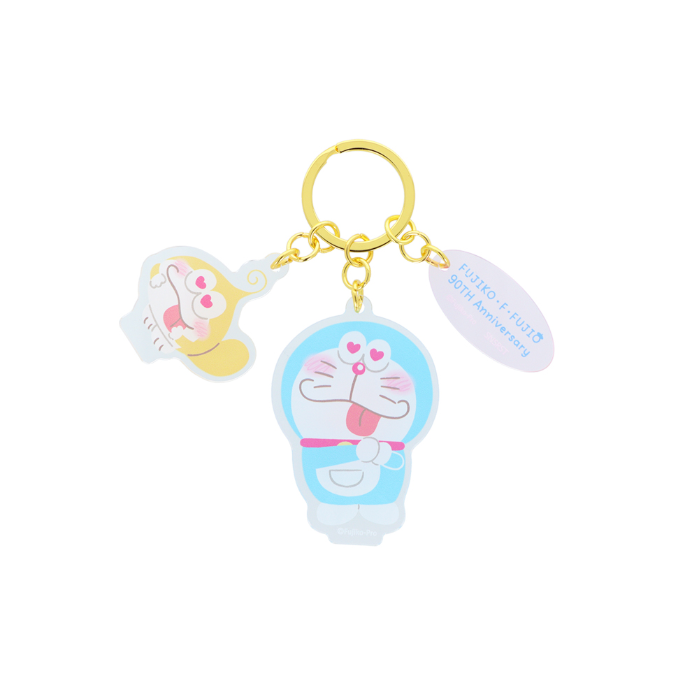 「ドラえもん」と、『21エモン』に登場する「モンガー」のチャームがセットになったアクリルキーホルダー。