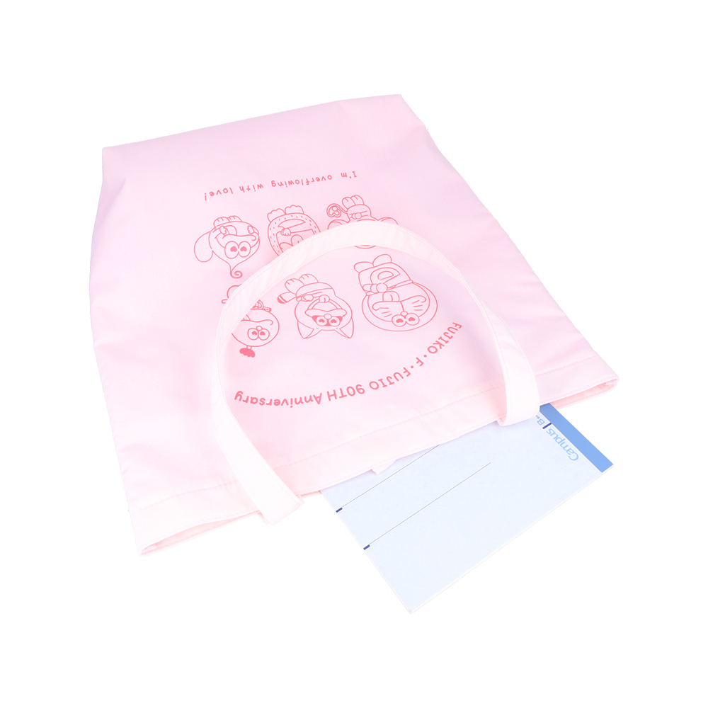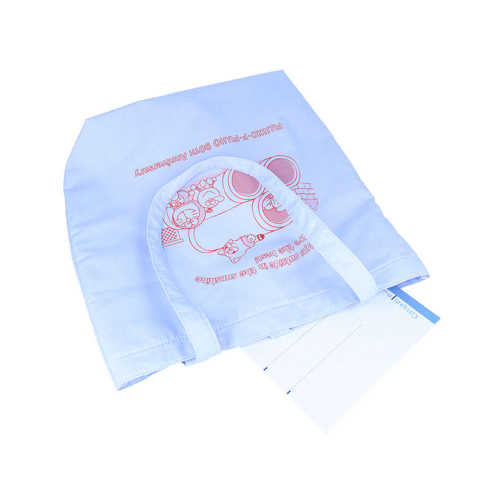 アイボリーのトートバッグは、一緒に料理する「ドラえもん」「チンプイ」「ポコニャン」のデザイン。