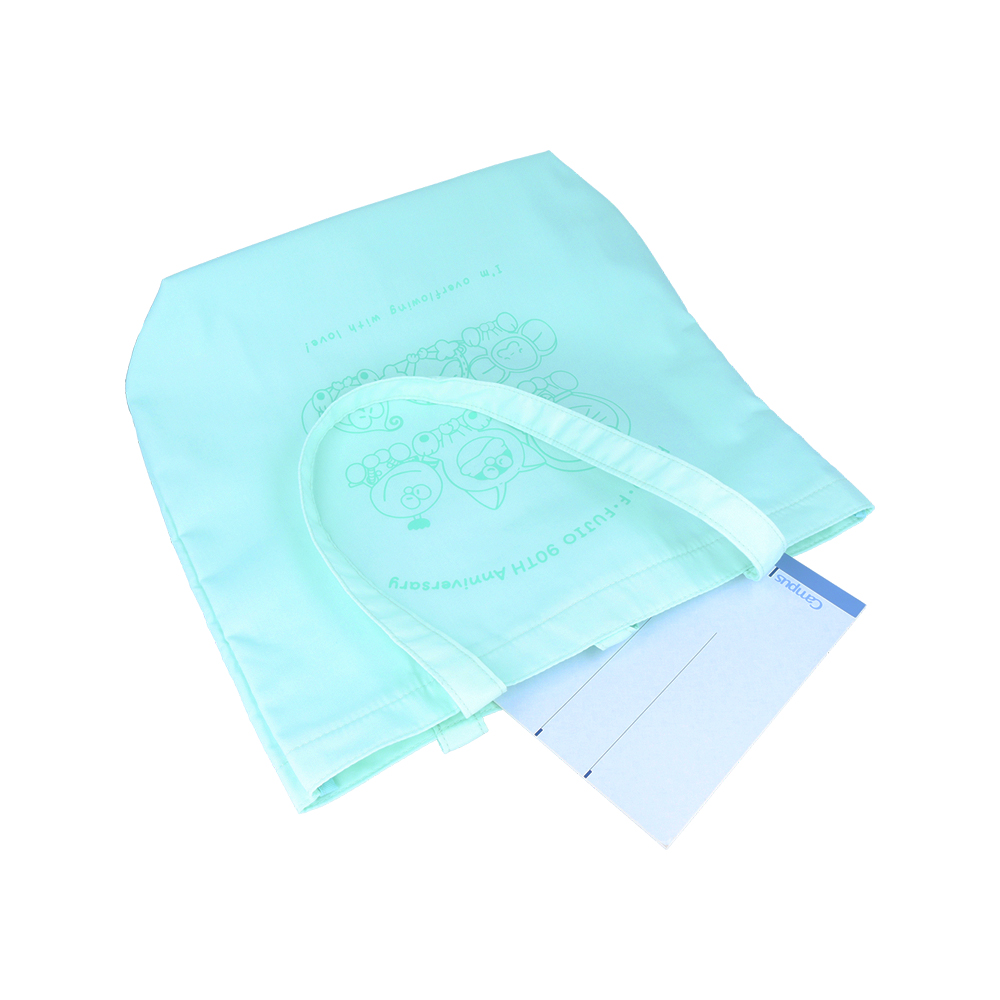 爽やかなミントグリーンのトートバッグに、同系色でイラストをあしらったデザイン。