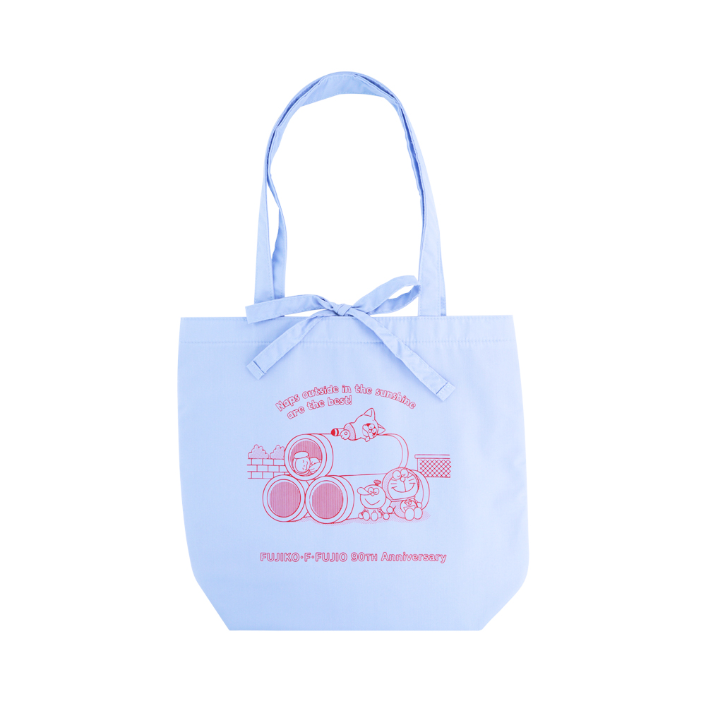 ブルーのトートバッグには、土管のところでひと休みするキャラクターたちをデザイン。