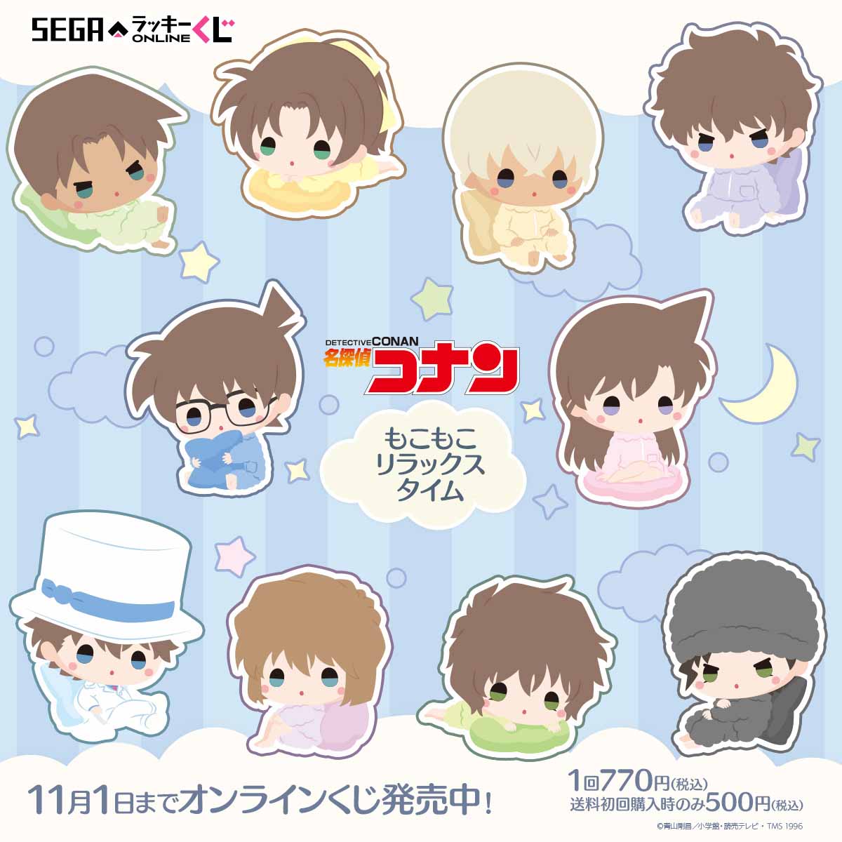 セガ ラッキーくじオンライン「名探偵コナン -もこもこリラックスタイム-」は、2024年9月11日11:00から11月1日23:59までの販売です。