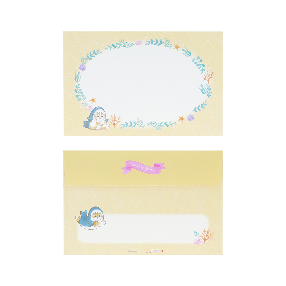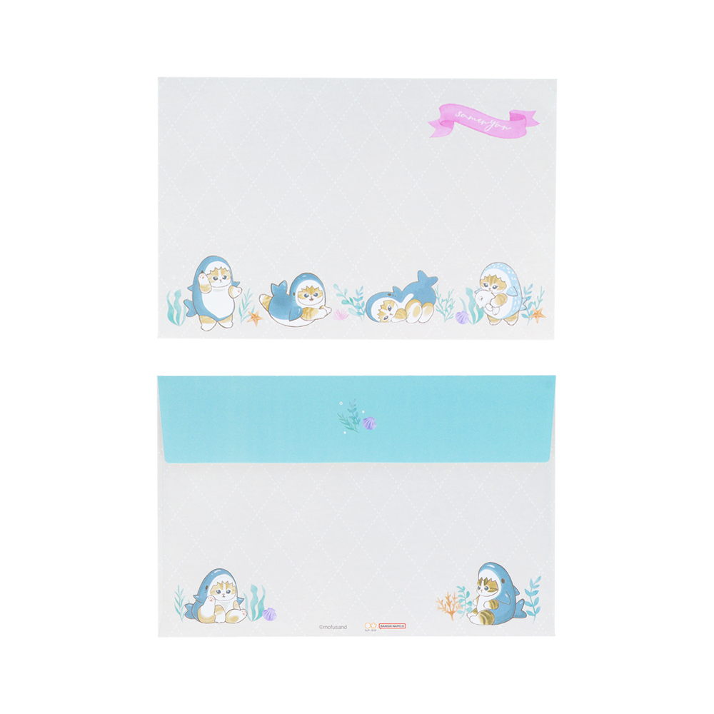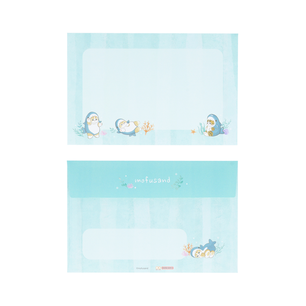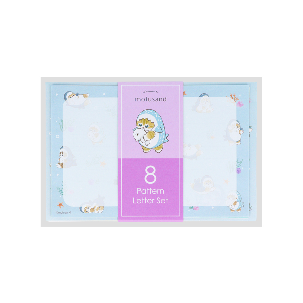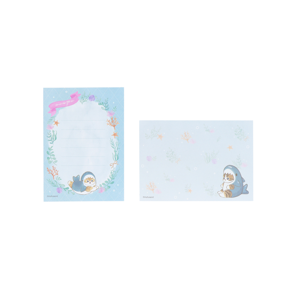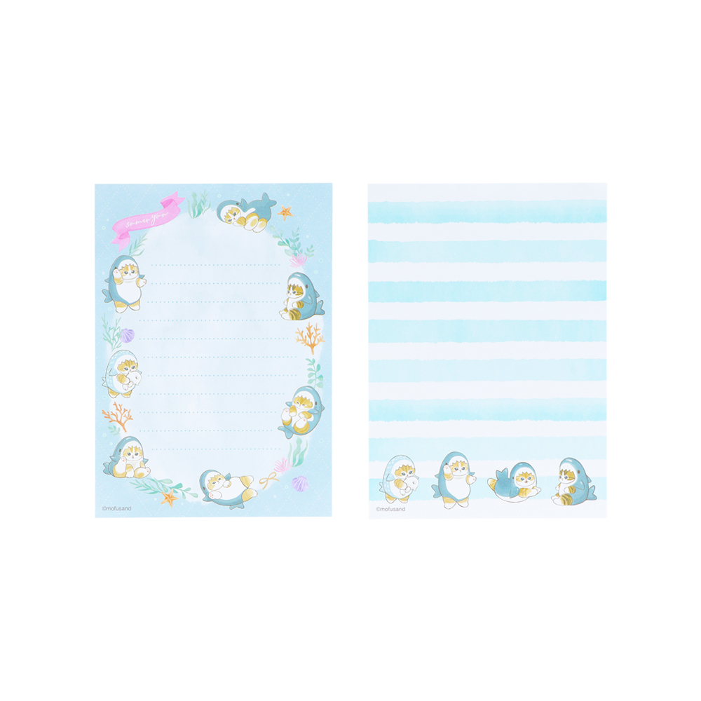 便箋・封筒、それぞれ8柄入った、『サメにゃん』柄のレターセット。