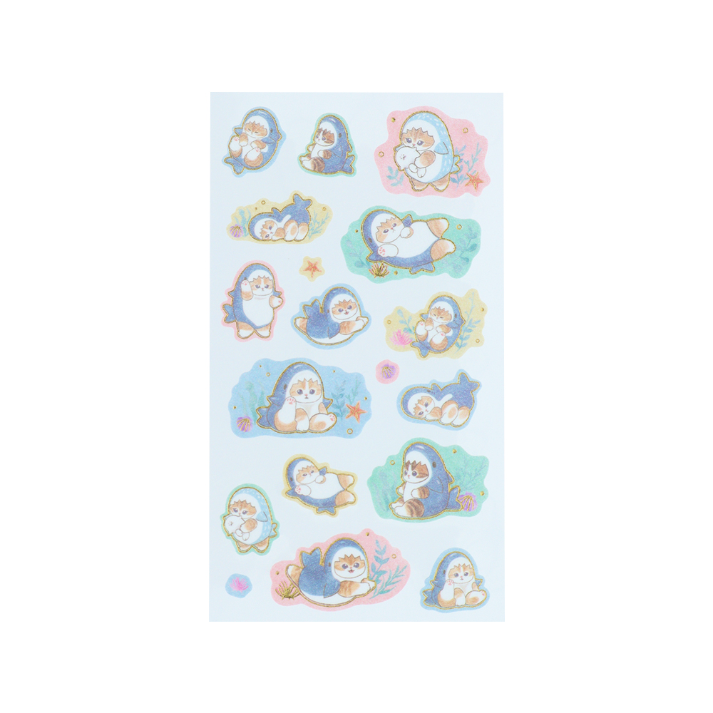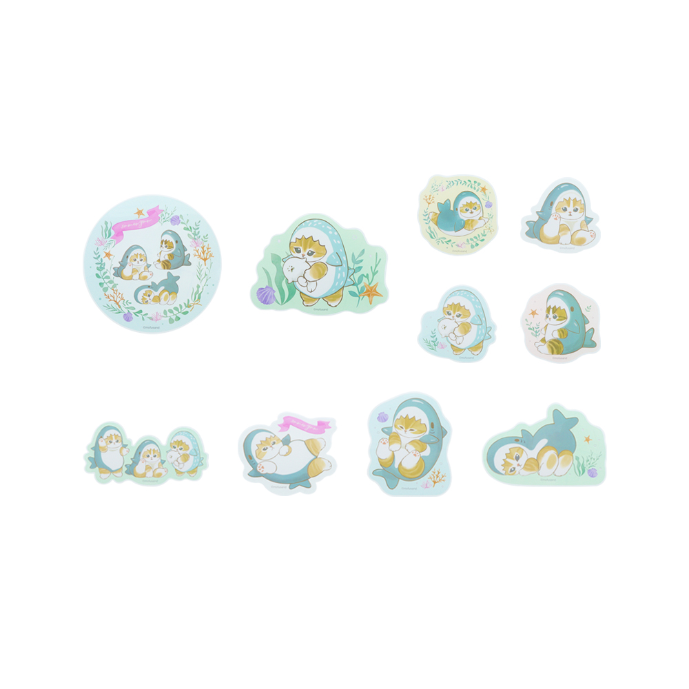 『サメにゃん』柄のにゃんこ達の姿を貼って楽しめる、貼って剥がせるステッカーセット。